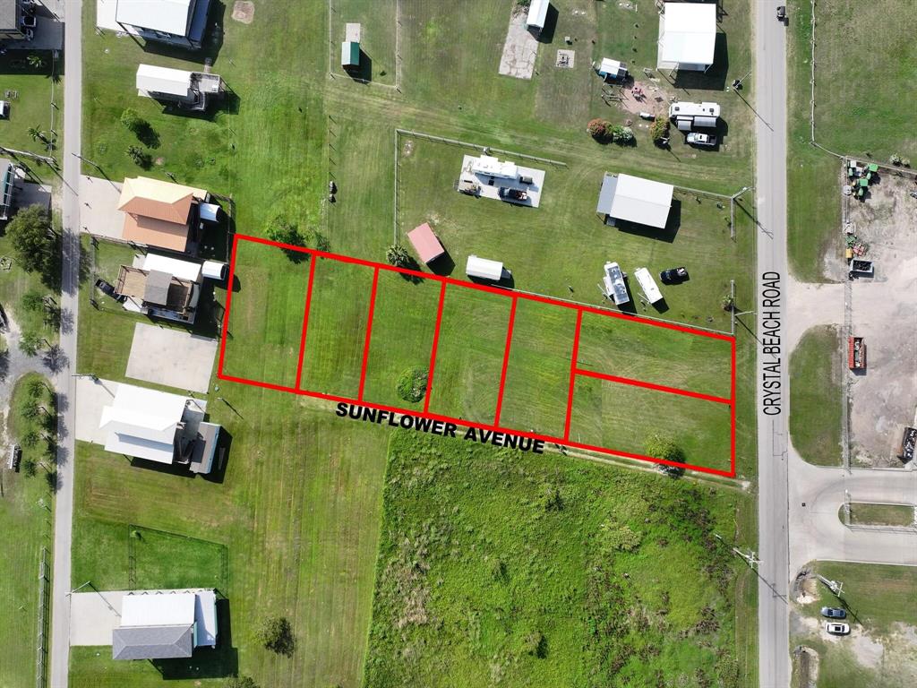 Looking to start a project in Crystal Beach? This 7 lot package has so many possibilities. Located off South Crystal Beach Road, this property has a great location for an RV park, beach house development, or business location. The property is already split with 6 lots measuring 50 ft by 100 ft, and one lot measuring 73 by 100. Two lots face South Crystal Beach Road (lots 3 & 4), and five lots are accessible through Sunflower Avenue, a dedicated 30 foot easement for access to each lot. Lot 4 does have city water connected. Buyer is responsible for verifying availability of utilities. Minerals are reserved. Don't miss out on this opportunity!