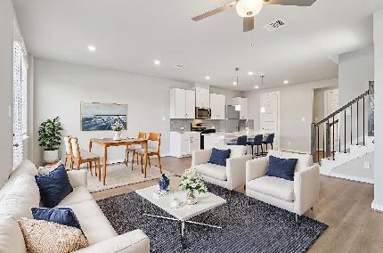 Brand new, energy-efficient home available NOW! Simplify your morning breakfast at the Caden's large curved kitchen island and dining area. Upstairs, the spacious secondary bedrooms provide ample storage space. This master-planned community is a rare find in Spring Branch. The Townhome Series features a simple buying process with clear pricing and no surprises. With ready move-in homes made up of five two-story floorplans ranging from 1,495 – 2,052 sq. ft., you’re sure to find something you’ll love. Each of our homes is built with innovative, energy-efficient features designed to help you enjoy more savings, better health, real comfort and peace of mind.