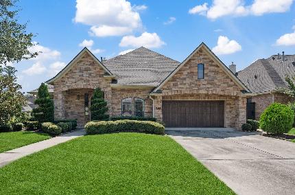 Gorgeous Emerald 1.5 story home with open family room featuring expansive windows overlooking the back patio. Handcrafted hardwood floors flow throughout, complemented by stained beams in the living room & primary bedroom. The chefs kitchen includes Monogram appliances, 6 burner stovetop, double ovens, exotic granite countertops, spacious pantry and open to the family room. The breakfast room is wrapped in large windows flooding the space with natural light. An adjacent office nook serves as a study/work area. The owners suite features a spa-like bathroom with a step in shower, massive jetted tub, dual vanities & oversized custom walk in closet. A downstairs media room currently functions as a workout space serves as a flex room or large office. The upstairs gameroom has been converted to a second media room but can easily revert to a gameroom. The backyard oasis provides privacy with mature landscaping, HUGE covered patio w/stone fireplace & outdoor kitchen & room for a pool. Call now