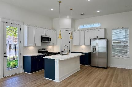 Beautiful two-story single-family home featuring 2 bedrooms and 2.5 baths, plus a versatile media room/study, located in a gated community. Ideally situated near Beltway 8, I-10, Memorial City, City Centre, and the Energy Corridor for convenient access to shopping, dining, and major employers. The home offers first-floor living with hardwood floors throughout the main areas. The kitchen features stainless steel appliances, granite countertops and opens to the living and dining spaces. Upstairs, the spacious primary suite offers high ceilings and a large walk-in closet. The primary bath includes double sinks, a soaking tub, and a separate shower. The secondary bedroom has a private en-suite bath and is located on the opposite side of the floor for added privacy. A flexible media room or study upstairs can easily serve as a third bedroom if needed. Step outside to enjoy a large backyard with a covered patio, green space, and a sprinkler system, ideal for relaxing or entertaining.