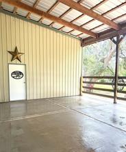 This is an amazing property and an amazing opportunity. 2.8 Acres in the country with workshop containing 4,200 sq ft total of concrete slab containing a 2,000 sq ft workshop area with a 600 sq ft living quarters built off the side and a 1,600 sq ft wrap around patio to sit and enjoy those huge Oak trees or entertain family and friends. Comfy 1 bed 1 full bath apartment has a large kitchen area with granite look countertops open to the living room. The huge shop/barn area has RV hookup, washer/dryer area, 3 hose bibs, 3 drain areas, one year old water well. This very well could be turned into a huge 2-story barndominium if you so choose or build that dream house under all the huge Oaks. This stunning property is fenced/cross fenced for horses, already landscaped and ready for you to move in and enjoy. Also check out the large upstairs storage area. When you first pull in the drive, you will feel like you are in paradise.