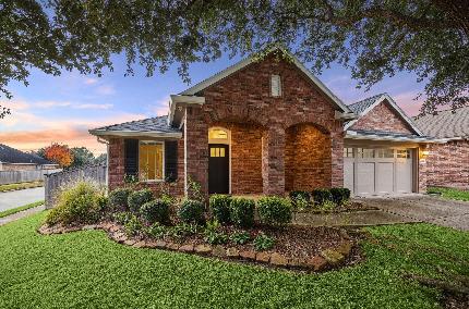 Beautifully loved 1½-story home in the sought-after Gleannloch Farms master-planned community. Nestled on a quiet cul-de-sac lot, this inviting home welcomes you with a covered front porch and a mature shade tree that provides privacy and cooling comfort during the summer months. Inside, you’ll find an open-concept design with soaring ceilings and a dedicated front office perfect for working from home. The kitchen opens to the spacious living area and features an oversized breakfast nook, ideal for casual dining or gatherings. Three traditional bedrooms, all located on the 1st floor, are complemented by a flexible bonus room that can serve as a 4th bedroom, playroom, or home gym. Upstairs, a large game room offers additional space for entertainment or relaxation. Step outside to a covered back patio overlooking an expansive backyard with plenty of room for outdoor activities or even a future pool.