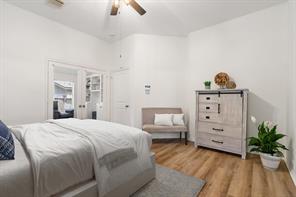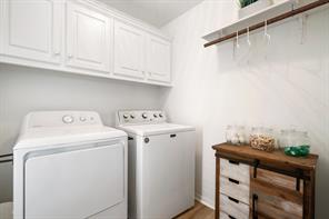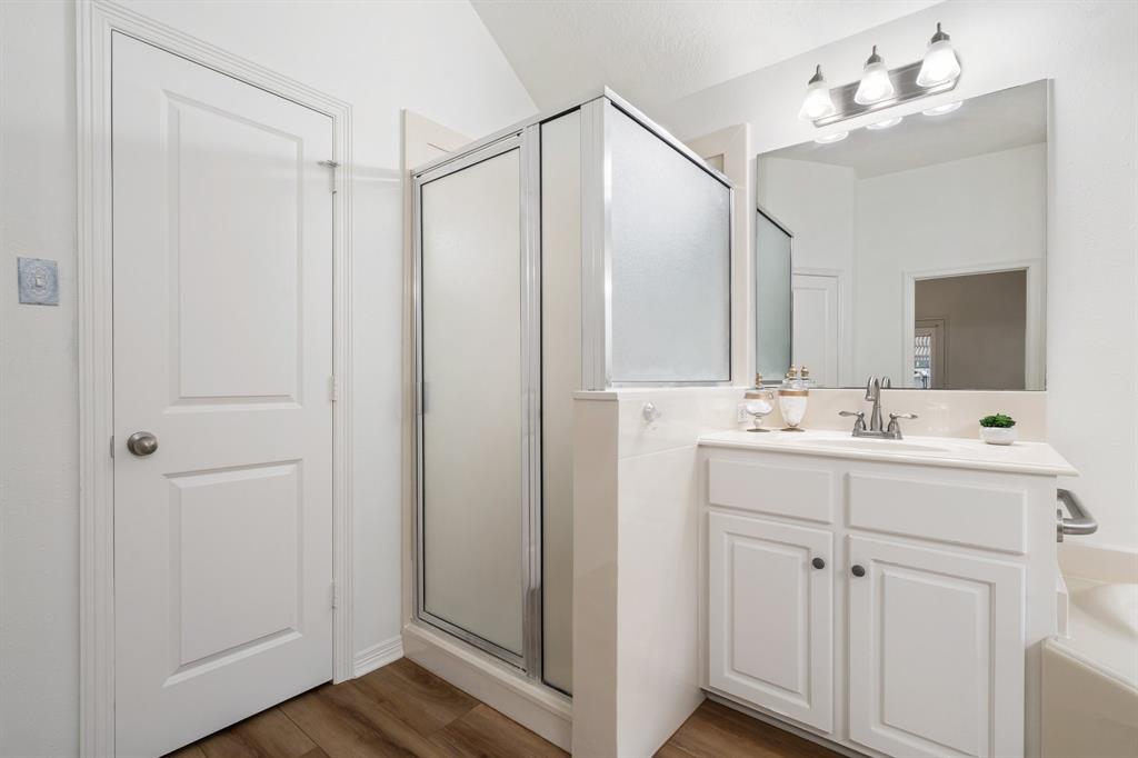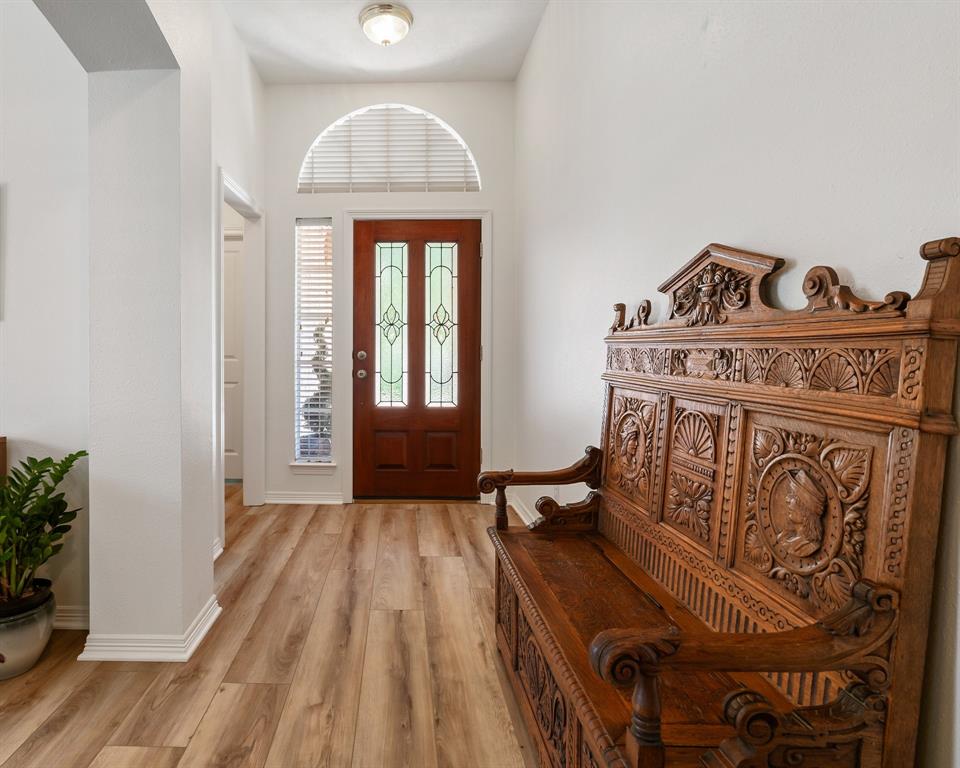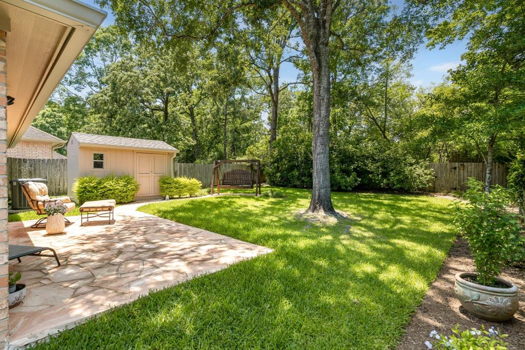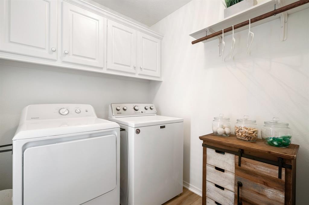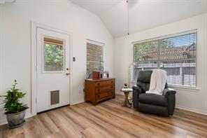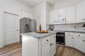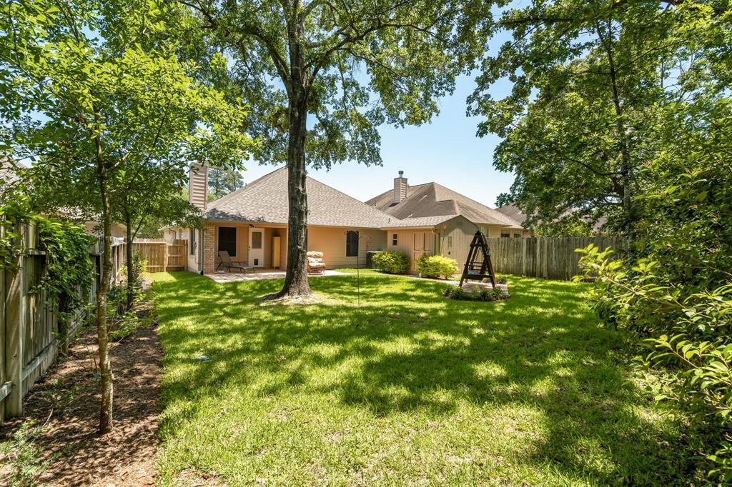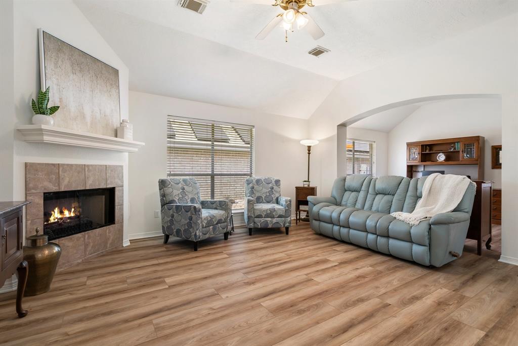 Discover refined living in this 2-bedroom, 2-bathroom patio home, where recent vinyl plank flooring flows throughout. The formal entryway features high ceilings, windows are a defining feature, bathing every room with natural light. A dedicated study, complete with custom built-in shelving, provides the ideal flexible space. The kitchen is a chef's delight, boasting a generous island with stunning granite countertops, classic shaker cabinets and sleek stainless steel appliances. This well-designed space offers ample storage and counter space. Retreat to the luxurious primary suite, featuring double sinks, vanity space, a large soaking tub, and a separate walk-in shower. The secondary bedroom is equally inviting, with an arched window. A utility room is located inside the home. Step outside to a spacious green backyard featuring a cobblestone pathway and covered patio lined with mature landscaping. Don’t miss the opportunity to make this gem your own!
