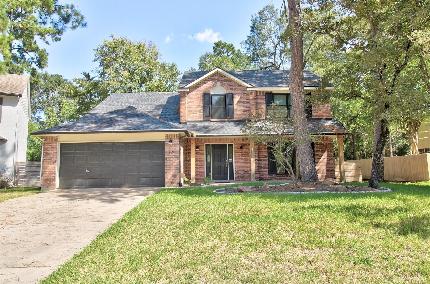 SHORT TERM OR LONG TERM RENTAL. Furnished or unfurnished - your choice. LEASE THIS BEAUTIFULLY UPDATED 4 Bedroom, 2.5 Bath in the heart of THE WOODLANDS. This home has a light, bright interior with fresh paint, luxury vinyl plank floors, neutral tile in bathrooms, & LED lighting. BEST OF ALL - NO CARPET HERE! Enjoy the modern kitchen with its white subway backsplash, stainless steel appliances & deep "farmhouse" sink - open to the family room. The spacious primary suite boasts high ceilings and a remodeled bathroom with frameless shower enclosure and garden bathtub. Multiple living spaces downstairs. All 4 bedrooms upstairs. Large back yard with plenty of room for sports, pets or entertaining. Prime location with easy access to shopping, dining, parks, schools and recreation. Walking Distance to Falconwing Park, bike trails & one of several public pools. ZONED FOR EXEMPLARY WOODLANDS SCHOOLS. LOW TAXES TOO!!! Comes with Refrigerator, Washer & Dryer. Available for immediate move-in.
