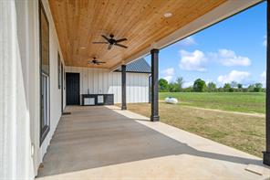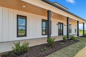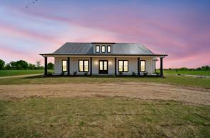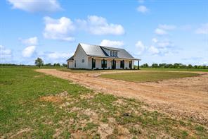 This newly built, custom home boasts 2,250 square feet with an oversized 2-car garage, covered front and back porches on a sprawling 2 acre lot. The beautiful country views and an abundance of natural light shine in from the many, large windows and the 18 ft ceilings in the open concept kitchen, dining and living rooms plus the 12 ft ceilings throughout the rest of the home adds an airy and relaxing feel. The attention to detail is on display in the custom tile work and solid-wood cabinetry throughout the home. The fortunate owners of this 3 bedroom, 2.5 bathroom home will enjoy entertaining guests utilizing the luxury 8 burner gas range with double oven, wine fridge and electric fireplace. Imagine enjoying the company of friends and family on your own plot of land in the charming Austin County from your expansive, outdoor patio with cedar ceiling, outdoor kitchen and unobstructed views of the countryside.