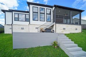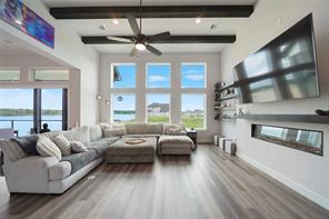 Stunning spacious and rare 1-story 3 bedroom / 3 bath gated waterfront home on Lake Conroe! Virtually new and just completed in late 2023! Furnishings and appliances (including refrigerator and washer/dryer) convey with minimal exclusions--a truly turnkey property. Highlights include full-house generator, new Trex boat dock with covered slip/lift, epoxy garage flooring, high ceilings, cozy fireplace in the family room and designer finishes throughout! All bedrooms feature ensuite baths. Luxurious master bath with European 'wet room' configuration is extraordinary! Foorplan flows seamlessly from living area to dining room and kitchen--lending itself beautifully to entertaining and enjoying the waterfront serenity of lake life. California sliders open from the kitchen/dining area to the outside while expansive windows provide panoramic water and sunset views. The large screened patio is the perfect spot to relax and enjoy life on the lake. HOA does allow short term rentals.