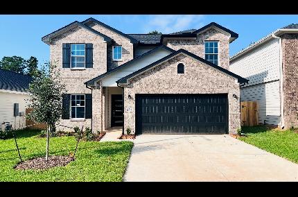 The popular Rio Grande Plan. 2507 Ft new Castlerock home. 4 bedrooms, study game room, 2.5 bathrooms, 10 x10 covered patio. The Chef's kitchen dazzles with 42" cabinets, island, extra cabinets, quartz countertops, and stainless level 2 GE appliances, Tile backsplash kitchen/baths. Vinyl plank-family room, foyer, kitchen, study, powder, utility. Tiled bathrooms. Large windows and high ceilings. Horizontal metal rails. The primary suite is a LUX bath retreat-soaking tub, frameless glass shower, & cultured marble double sinks. Energy Star efficiency, tankless gas water heating. high ceilings enhance the sense of openness, front gutters, and so much more. Cielo offers 45 acres of open space, pickleball & recreational amenities, dog park, top-tier Conroe ISD, new in community Janet K. Bartlett Elementary. Located conveniently near I-45, residents enjoy easy access to Lake Conroe, The Woodlands, and Houston—a perfect blend of suburban tranquility and urban connectivity.
