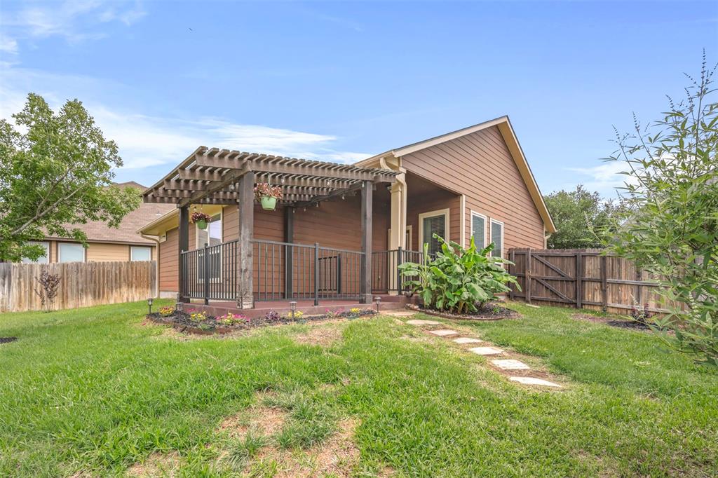 Backyard beauty meets move-in ready comfort in the heart of Bryan. This well-maintained home stands out with one of the most peaceful backyards in the neighborhood—lushly landscaped with steppingstone paths and vibrant flower beds nestled among a pepper tree, banana tree, oak tree, and rose bushes. Plus, with no rear neighbors and direct access to a private neighborhood walking trail. Inside, the home is clean, comfortable, and move-in ready. Thoughtful updates include new 2” faux wood blinds throughout & stylish light fixture upgrades in the dining and patio areas. The functional layout features open living and dining spaces, a well-equipped kitchen, three spacious bedrooms, and two full bathrooms—including a primary suite with walk-in closet and step-in shower. Enjoy neighborhood amenities including two swimming pools, multiple playgrounds, walking paths & a pond for fishing! If you’re looking for a peaceful retreat with convenience, charm, & standout outdoor living—this is the one.
