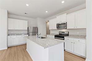 The open-concept entertainment space with a modern kitchen and dining room in the Chambers will provide the perfect amount of space for any family. An abundance of granite counter space, brand-new stainless steel appliances, and modern white wood cabinets are found in the kitchen. Comfort and luxury are both found in this master retreat! Secluded at the back of the home the master bedroom features lush carpeting and a window that overlooks the private backyard. The sizable bedroom is large enough to fit a king-size bed and dresser. A vanity with lots of counterspace and a linen closet are two exceptional features found in the master bathroom. To complete the suite is a grand walk-in closet large enough to fit any wardrobe.