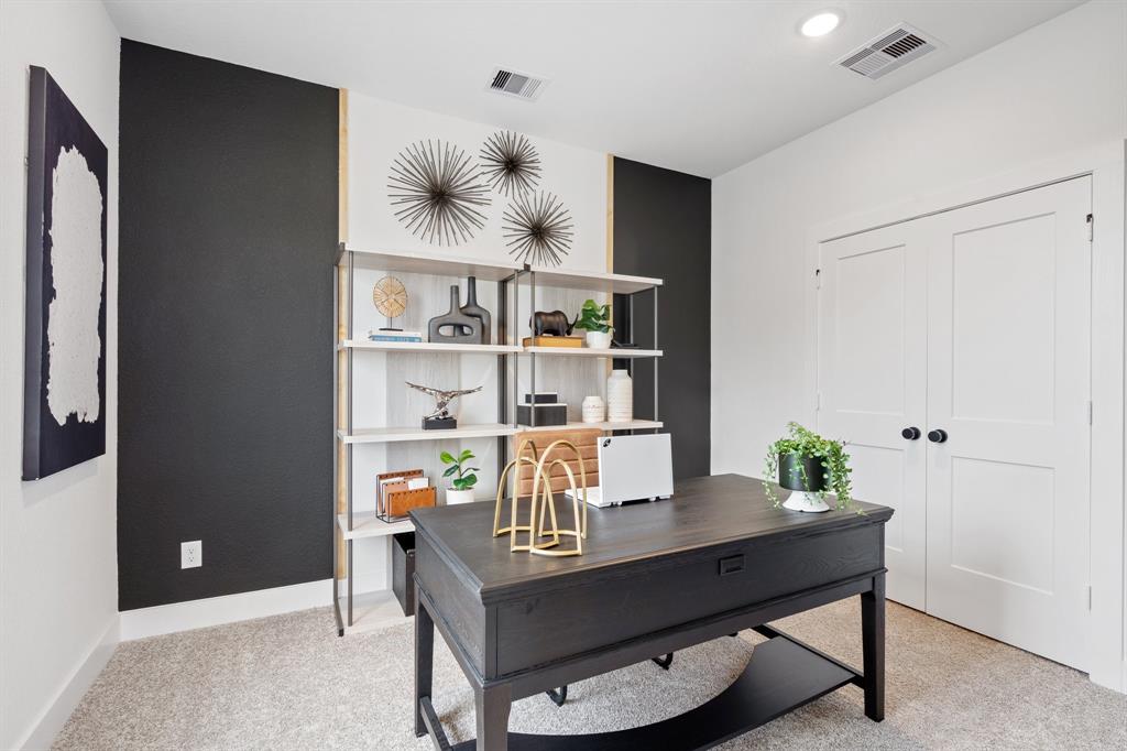 SMELL THE ROSES IN The ROSEWOOD Plan! Prepare to fall in love with this courtyard two-story stunner designed to impress with its wide-open spaces and thoughtful features. The main floor showcases a sprawling great room perfect for family gatherings, complete with a modern fireplace for cozy evenings. A sleek, expansive quartz island kitchen and adjacent casual dining area provide both functionality and style, leading out to a spacious covered patio ideal for outdoor relaxation or entertaining. You'll also find a versatile pocket office on this level, offering a private spot for work or hobbies. Upstairs, the owner's suite becomes a personal retreat with its spa-inspired bathroom featuring dual sinks, an oversized shower, and an impressive walk-in closet. Around a central flex space, perfect as a game room or study area, you'll find roomy secondary bedrooms that ensure comfort and convenience for all.