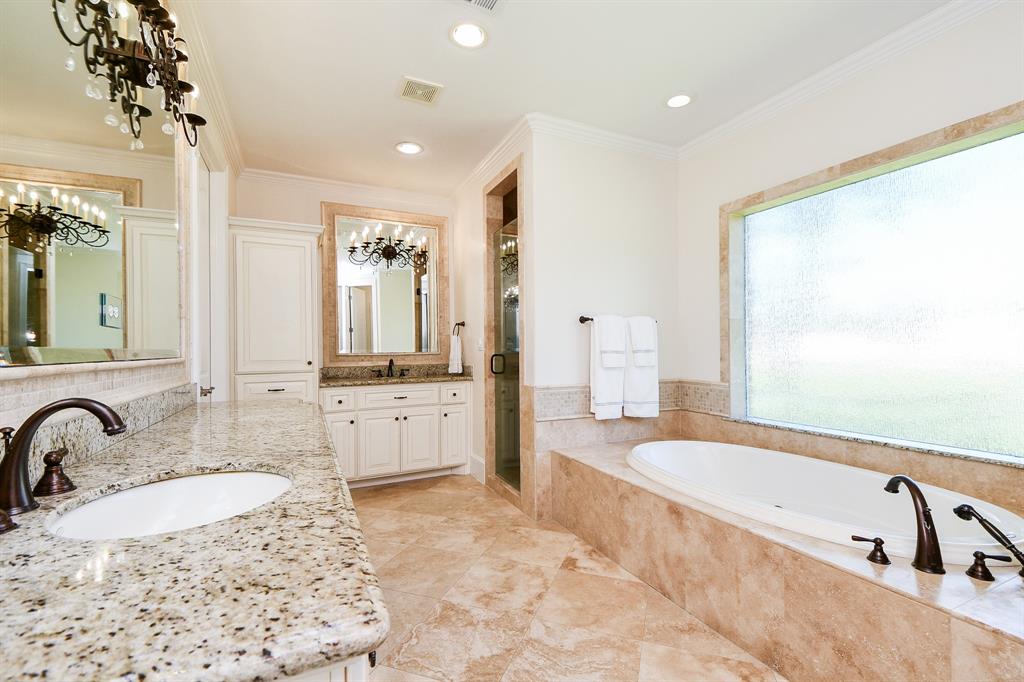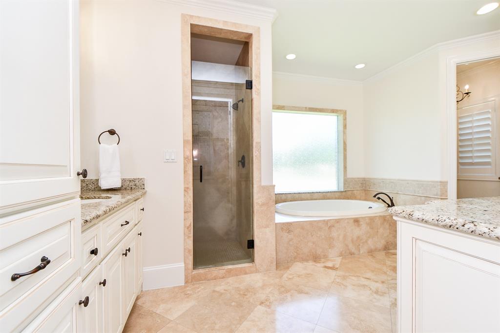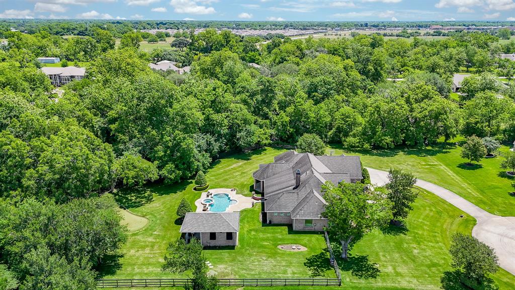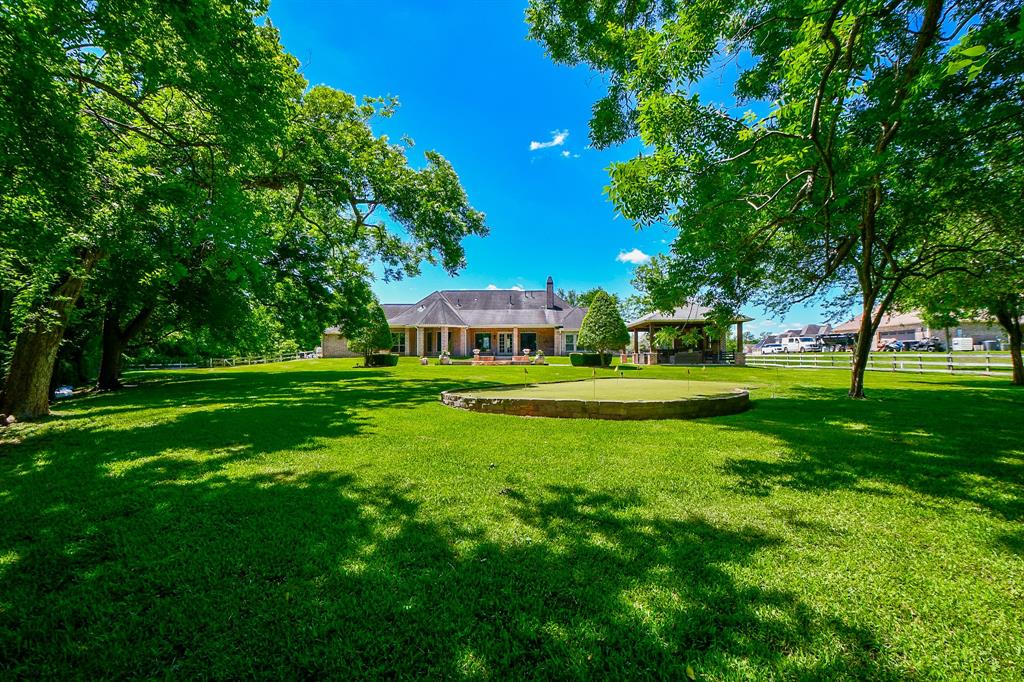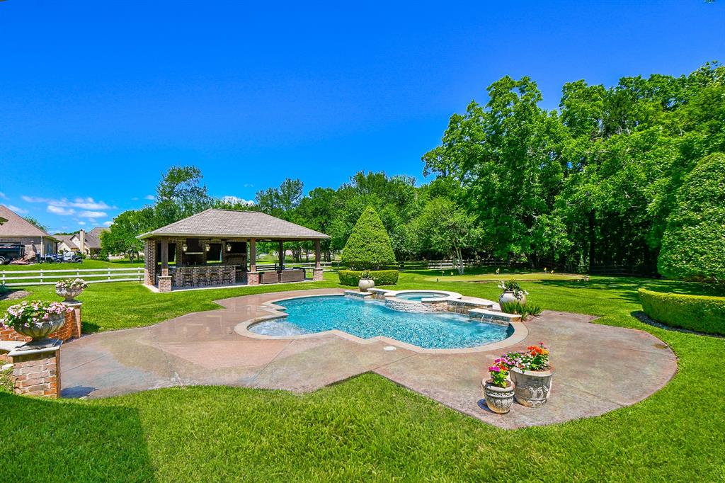Welcome to your custom-built dream home!!! This expansive one-story, 4-bedroom, 4-bathroom home sits on 1.25 wooded acres and has a 3-car garage. Home includes a sprinkler system, high ceilings, closets in each bedroom, Wolf appliances, double ovens, two dishwashers, water softener system, custom Benedettini Cabinetry, granite counters, brand new carpet, wood floors/plantation shutters/crown molding throughout and so much more. Gorgeous pool & spa with outdoor kitchen, plus your own putting green, which is perfect for entertaining. Walls of windows showcasing the backyard and lush wooded and landscaped grounds. 20+ mature trees. LOW TAX RATE/NO MUD/LOW HOA. This home is a must see!!!