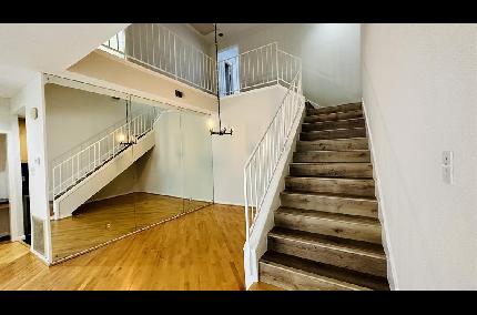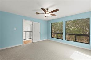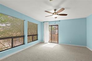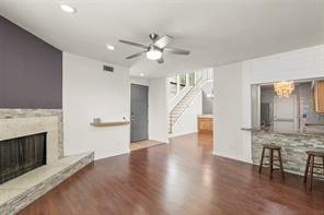 Discover the charm of Houston living in this immaculate residence! Step inside to soaring ceilings and an abundance of natural light accentuated by numerous stylish upgrades. The expansive living room features a cozy wood-burning fireplace and durable engineered wood flooring on the main level, offering both beauty and low maintenance. The interior has been freshly painted in contemporary tones. Upstairs, you'll find plush, brand-new carpeting in all bedrooms. Both full bathrooms and the powder room have been tastefully updated with modern colors and finishes. The spacious primary suite includes a private balcony. This inviting two-story unit offers a cozy, well-maintained living space in a quiet, clean, and spacious community. Enjoy the convenience of nearby dining and shopping, perfect for a vibrant lifestyle. Ideal for those seeking both ease and comfort in their living experience. Don’t miss the chance to make this hidden gem your own!