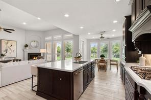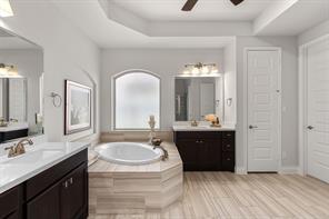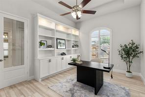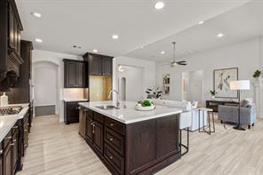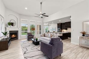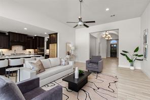 STUNNING one-story, 4-bedroom, 3.5-bath Perry home in Aliana, featuring stucco and stone construction. Beautifully manicured landscaping and private front courtyard. Step inside to find a dedicated study AND a spacious game room—each with hardwood floors, double French doors, and barrel-vault ceilings. Formal dining room, also with hardwood floors, offers easy access to a butler’s pantry. Open-concept kitchen and living area with ceramic tile flooring, cast stone fireplace, and wall of windows. Kitchen features a large island with built-in seating, ample cabinetry, and an adjacent breakfast room—perfect for casual dining. Expansive primary suite, complete with luxurious en-suite bathroom including garden tub, walk-in shower, dual vanities, two linen closets, and generous walk-in closet. Covered back patio; back yard overlooking greenbelt—no back neighbors! 3-car split garage. Conveniently located for ease of commuting. Highly rated schools. No flooding! Don't miss this beautiful home!