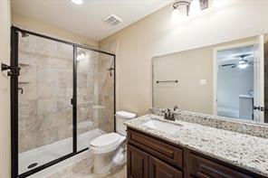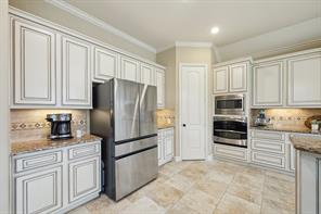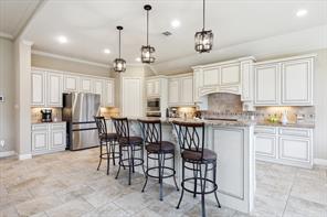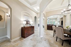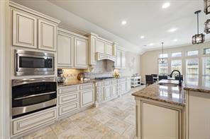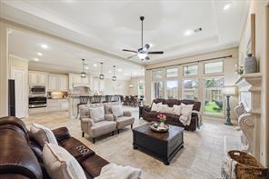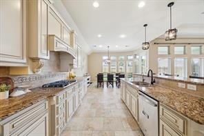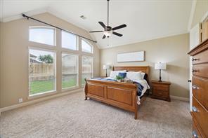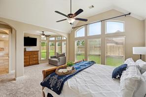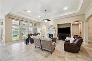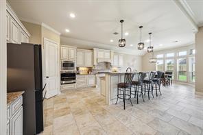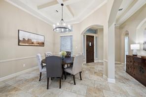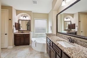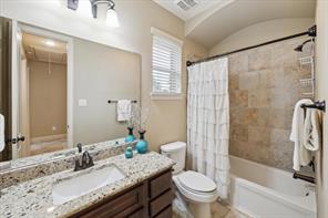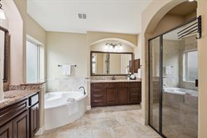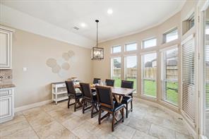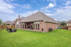 Beautiful 1.5 story Village Builders home with a huge pool-sized yard & a open-concept floorplan that boasts all 4 bedrooms on the first floor. A brick & stone elevation give way to this spacious design with soaring tray ceilings, recessed lighting, & tile floors throughout the living space that extends from the formal dining room into a stunning family room with cast stone fireplace & wall to wall windows with views of the covered patio & sprawling backyard. A spacious 10' island creates additional seating & a seamless transition to the kitchen with granite countertops, a Travertine backsplash and stainless appliances that include a double oven & gas cooktop. The split floor plan offers privacy for a guest suite with bath as well as the oversized master retreat with separate sitting area & spa-worthy bath. Upstairs gameroom with en-suite bath could also serve as an office, second suite or media room. Endless possibilities and zoned to FISD Cline Elementary. This one wont last long!