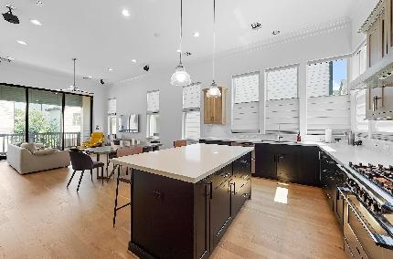 Welcome to 1141 W 18th Street. A striking soft contemporary end-unit with clean, Scandinavian inspired interior in the heart of The Heights/Shady Acres. Tucked on a private street with only 4 homes, enjoy the ultimate walkable urban lifestyle near parks, hike/bike trails, coffee shops, breweries & pubs. Featuring 3 bedrooms, 3.5 baths & ensuite bathrooms, the open-concept second floor offers high ceilings, large windows & abundant natural light. The bright European-style kitchen includes a sleek gas cooktop, stainless steel appliances & lacquered white cabinetry with generous storage. A large walk-in utility room with full-size washer/dryer sits conveniently off the main living area. The third-floor primary suite features tree-lined views, a spa-inspired bath with skylight, dual vanities, oversized shower with dual showerheads & a walk-in closet with built-ins. Enjoy the roof deck with downtown views. Minutes to Downtown, TMC, The Galleria & easy airport access. Water & Trash Included