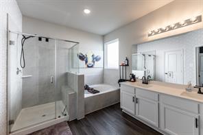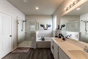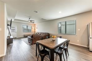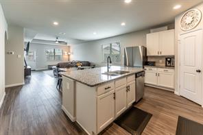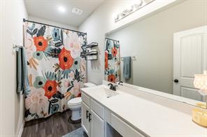 MOTIVATED SELLER. This FABULOUS 4 BDR FLOORPLAN home is ready for new owner in the conveniently located Hunters Creek community. Thoughtfully designed, it features three bedrooms and two full baths downstairs and a private upstairs retreat with a large gameroom/family room, a fourth bedroom, and a full bath — perfect for guests or multi-generational living. The open-concept layout of the home showcases stylish vinyl plank flooring throughout the main level. The kitchen is a true centerpiece, complete with a center island, granite countertops, and a clear view into the dining and family rooms. The primary suite offers a relaxing escape, featuring a spacious bedroom, a large walk-in closet, and a luxurious bath with a separate tub and shower. Notice recently installed upgraded fixtures and hardware. Outside, enjoy a fenced backyard, perfect for pets, play, or weekend BBQs. Don't miss your chance to own this beautiful and rare floorplan in this friendly neighborhood!
