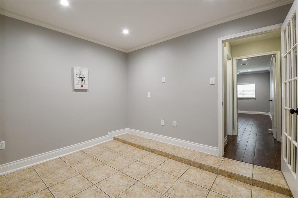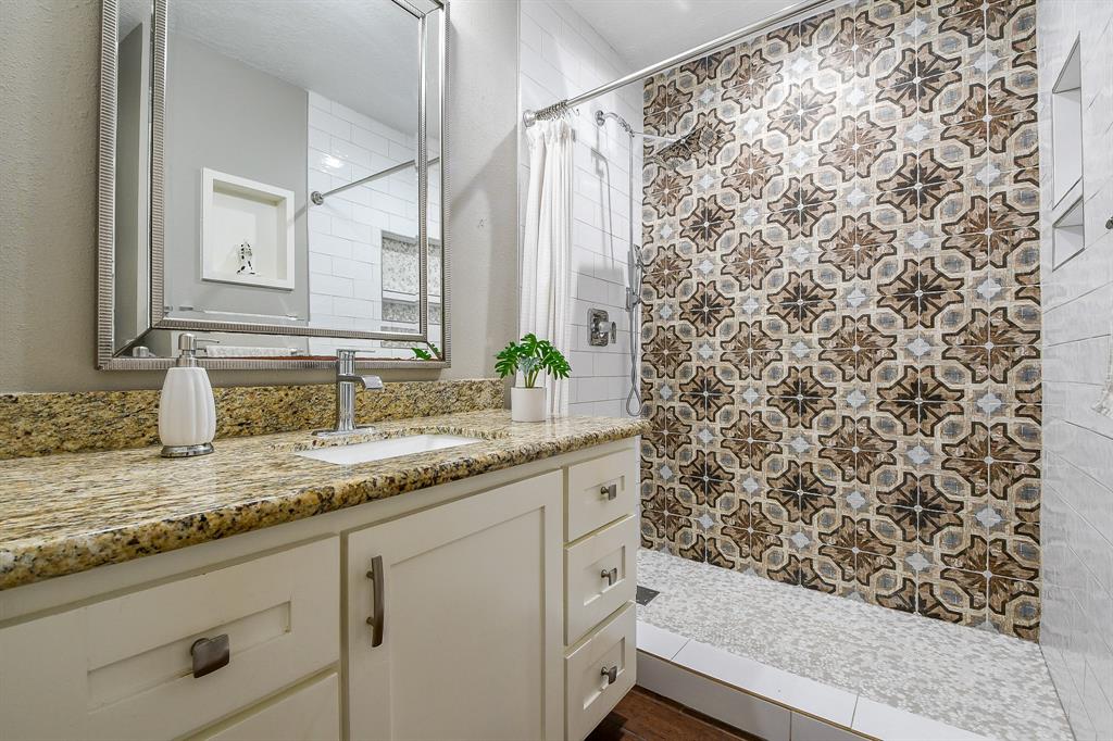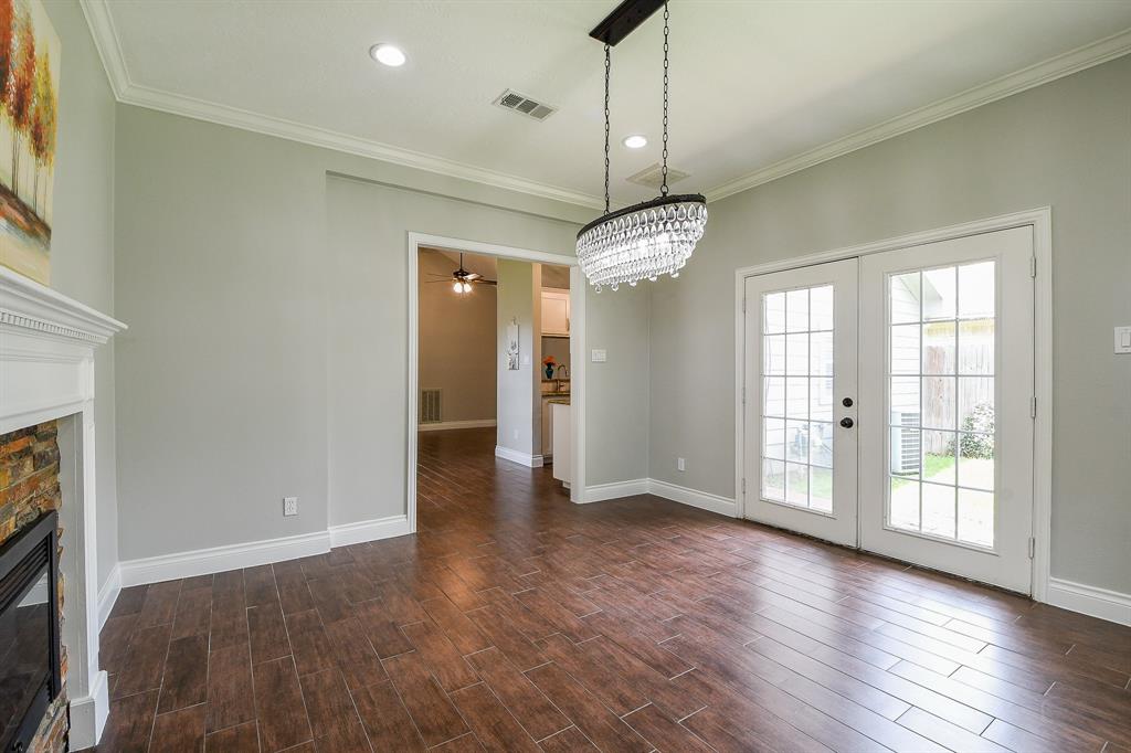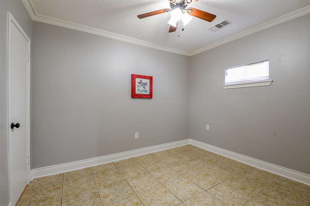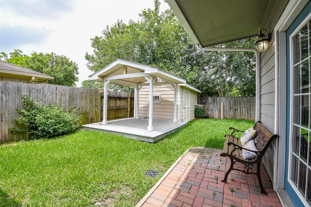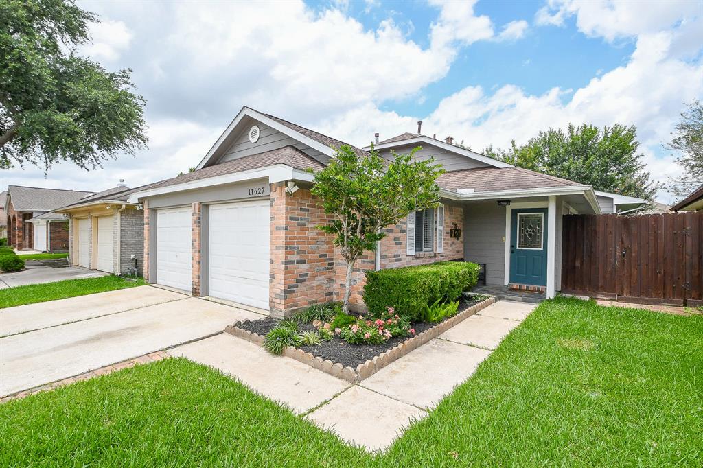 Welcome to this beautiful 3-bed, 1-bath home! As you approach the front door, you are greeted by a lovely covered porch. Inside, stylish wood-look tile flooring flows throughout the home. Vaulted ceilings in the kitchen and the living room. Kitchen boasts ample storage with beautiful white cabs, granite counters, refrigerator and SS appliances. Cozy, convenient window seat by the kitchen. Added formal dining room features a brick fireplace, a chandelier, recessed lighting & French doors to the backyard. All bedrooms feature a ceiling fan. Garage has been thoughtfully converted into a 3rd bed & an additional versatile room ideal for an office/study/kids room! The bathroom has granite counters and a beautiful tiled standing shower. Primary bed is located in the back. Step outside to the backyard with a large shed and a covered deck. Conveniently located at Beltway 8 E and I-45 S. Schedule your tour today!