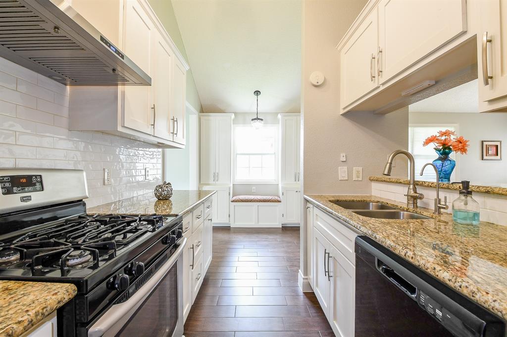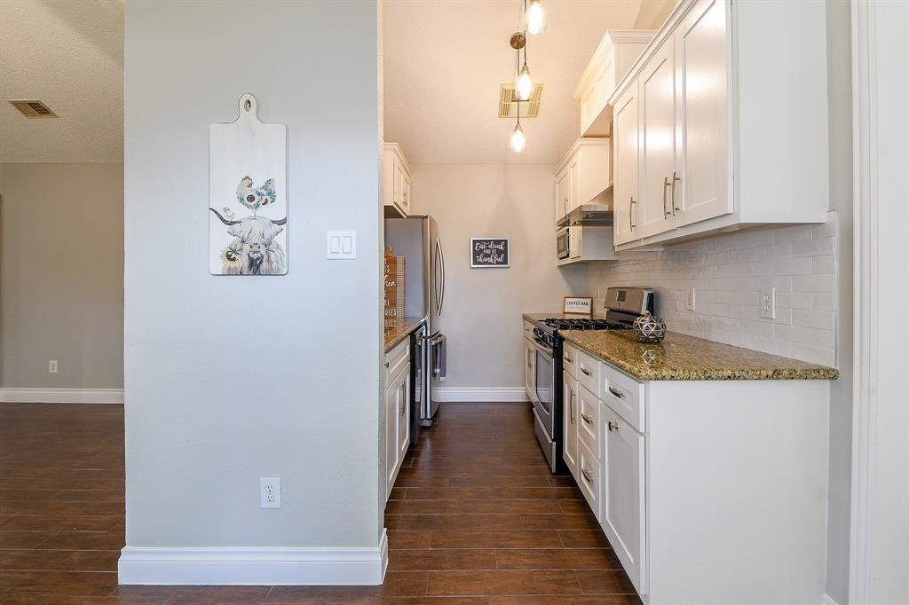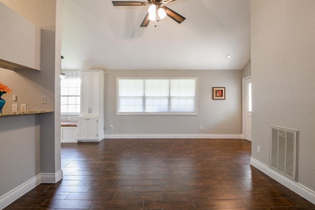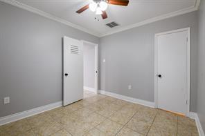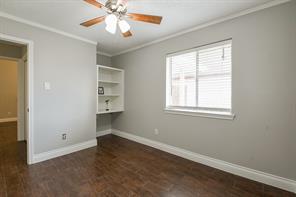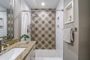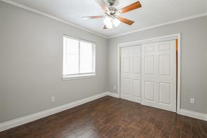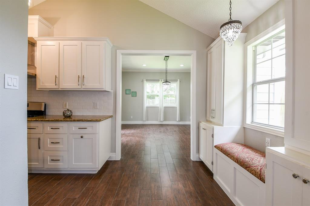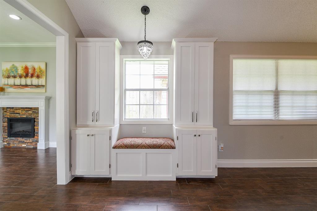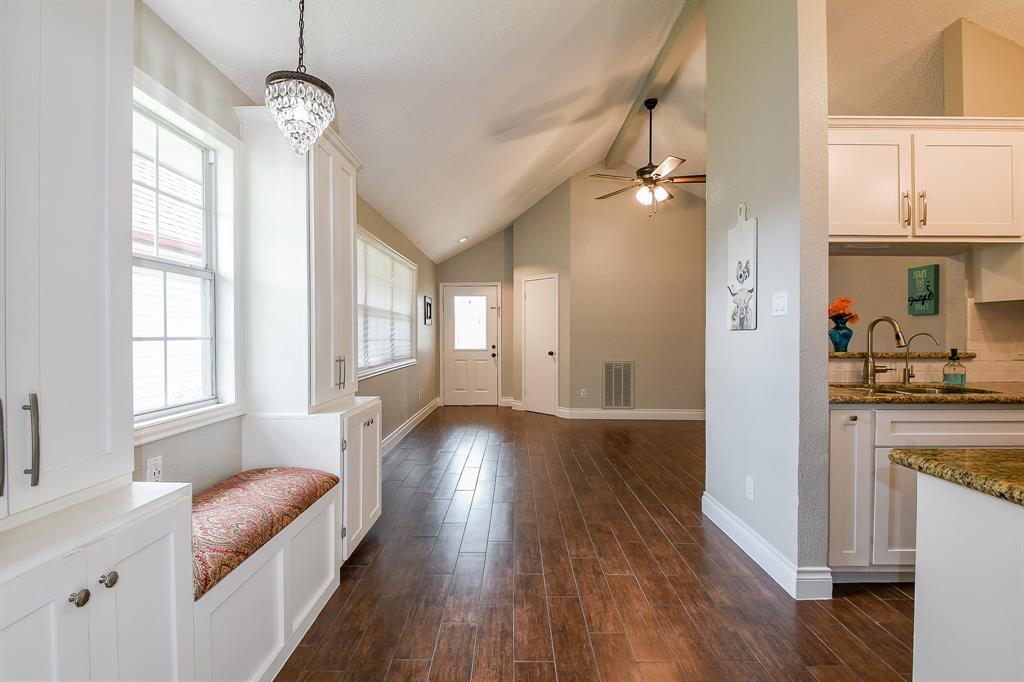 Welcome to this beautiful 3-bed, 1-bath home! As you approach the front door, you are greeted by a lovely covered porch. Inside, stylish wood-look tile flooring flows throughout the home. Vaulted ceilings in the kitchen and the living room. Kitchen boasts ample storage with beautiful white cabs, granite counters, refrigerator and SS appliances. Cozy, convenient window seat by the kitchen. Added formal dining room features a brick fireplace, a chandelier, recessed lighting & French doors to the backyard. All bedrooms feature a ceiling fan. Garage has been thoughtfully converted into a 3rd bed & an additional versatile room ideal for an office/study/kids room! The bathroom has granite counters and a beautiful tiled standing shower. Primary bed is located in the back. Step outside to the backyard with a large shed and a covered deck. Conveniently located at Beltway 8 E and I-45 S. Schedule your tour today!