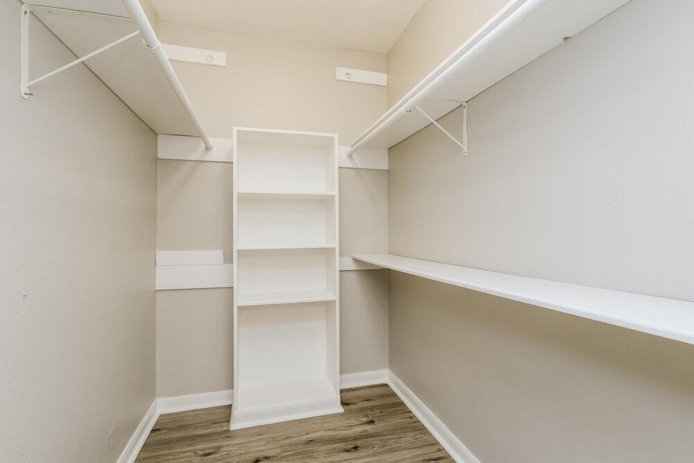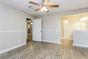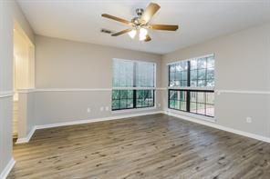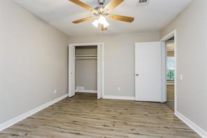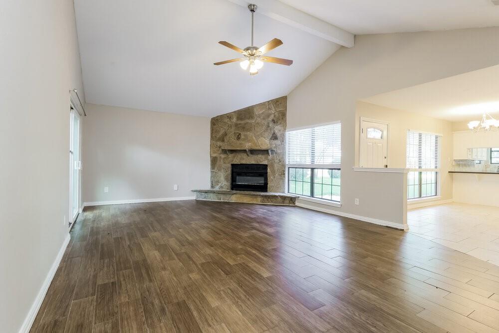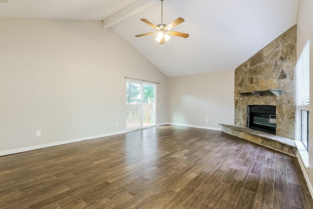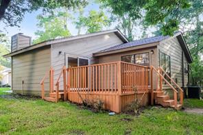 Several large trees provide a shady setting for this Montgomery rental home featuring an attached garage. A floor-to-ceiling stone fireplace will catch your eye in the living room, which comes well-appointed with gorgeous hardwood flooring and a lighted ceiling fan. Follow the sliding glass doors outside to relax and enjoy the view on the stunning wooden deck. There's a pretty tile backsplash and modern appliances in the kitchen, along with sleek black countertops and a convenient pantry. Towards the rear of the home, the primary suite comes with more hardwood flooring and boasts a large walk-in closet and an additional linen closet in the adjoining private bathroom.