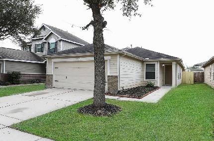 Great, 1st time Starter Home or could be a good Investment Property. Two Story Home, offers OPEN downstairs Living area, open to combination Eat-in Kitchen Area. All Bedrooms are located Upstairs. Primary Bedroom has a Large walk-in closet. Primary bathroom, has Tub/Shower combo. Good size secondary bedrooms. Secondary bathroom, also has combination Tub/Shower. Powder/half bathroom, located downstairs. Fresh interior paint. 1-Car Garage. Great Location, *NO back door neighbor. Community Park, Pool, Amenities, all *with-in Walking Distance. Minutes to Shopping and Quick Access to Beltway 8 and I-45.