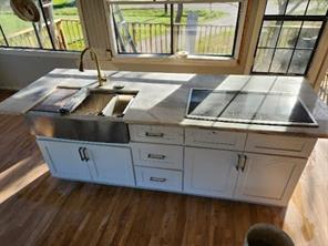 Gorgeous 3 bedroom 2 bathroom recently remodeled River house in Angleton. 270 degree River views, Fully upgraded/recently renovated, New showers, deep Soaking tubs, bathroom vanities, new Waterproof scratch resistant Vinyl plank flooring, 5 super powerful ceiling fans throughout. This beautiful home features 2 Kitchens, 2 stainless fridges, 2 cooking stove tops. Huge 22 foot x 8 foot outdoor balcony to enjoy the breathtaking river views. Home features a 2 car covered garage, 2 sets of stairways (one inside one outside). HUGE corner lot. Very quiet, peaceful, fresh air out in the countryside. Boat ramp is located 100 feet away from the house (no houses between this house and boat ramp directly across the street).