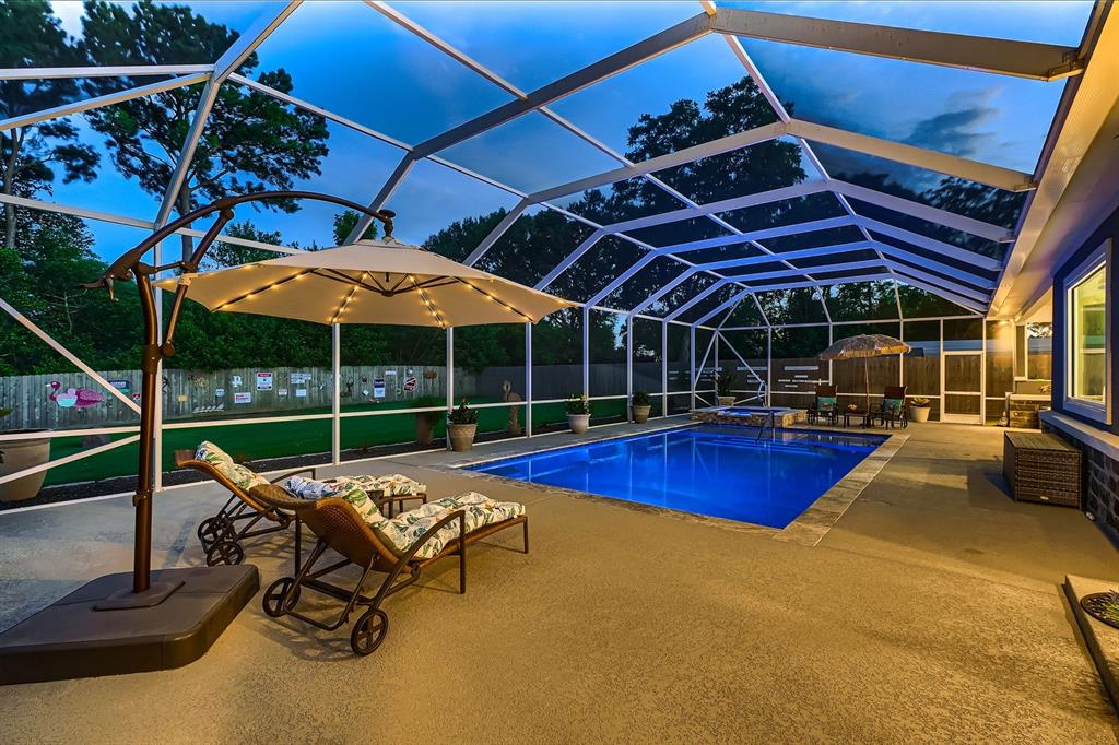 Discover your private piece of paradise with this exceptional Brenham home. Featuring wood-like tile flooring throughout, an energy-efficient home with whole-house spray foam insulation, a tankless water heater, and prepared for a whole-home generator, complete with a 3-car garage finished with epoxy flooring. Step outside through sliding doors onto the lanai and enjoy a stunning 62 ft x 27 ft screened-in, heated pool and spa, conveniently accessible from multiple rooms, including the primary bedroom and great room. The chef’s kitchen is a dream, complete with a white enameled farmer's sink, walk-in pantry, Thor wine chiller, gas cooktop, and an LG convection oven that elevates your culinary experience. The study’s dual glass doors and recessed ceiling offer a perfect tranquil retreat. This home is more than a residence — it’s a sanctuary ready for its new owners. Take advantage of this unique opportunity and schedule your showing today!