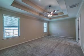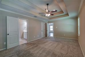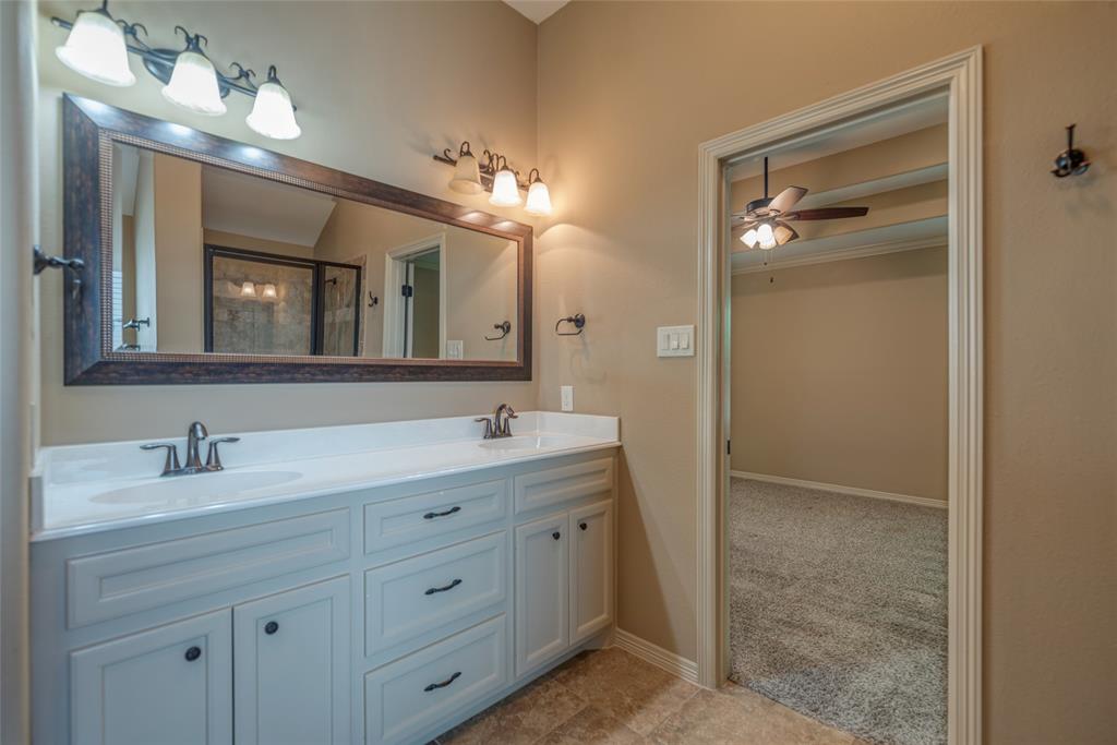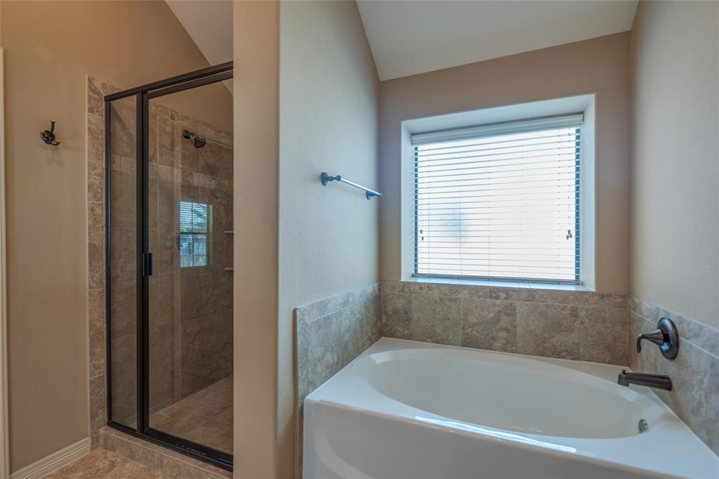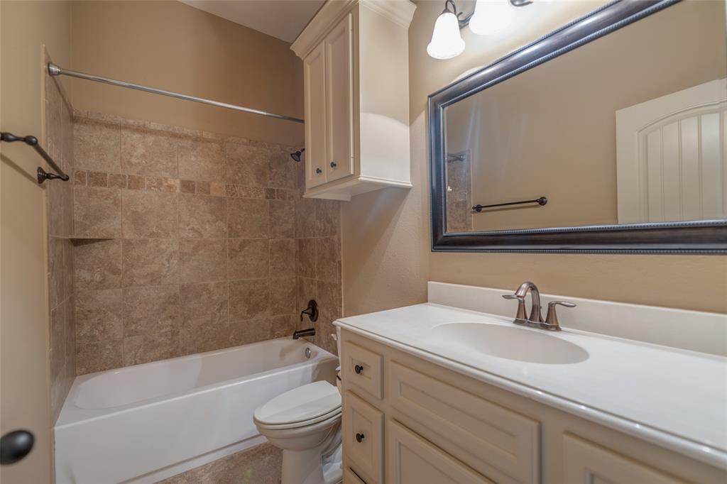 Clean and ready for move in! This 3 bed, 2 bath home features engineered wood in the main living areas, tile in all wet areas and carpet in the bedrooms. The primary room has raised ceilings and an en suite bath featuring double sinks, a garden tub and walk-in shower. Bedrooms 2 and 3 share the second full bath that has a large vanity and shower/tub combo. Fully fenced backyard with storage shed and covered patio.