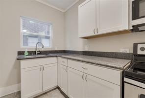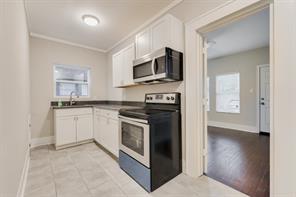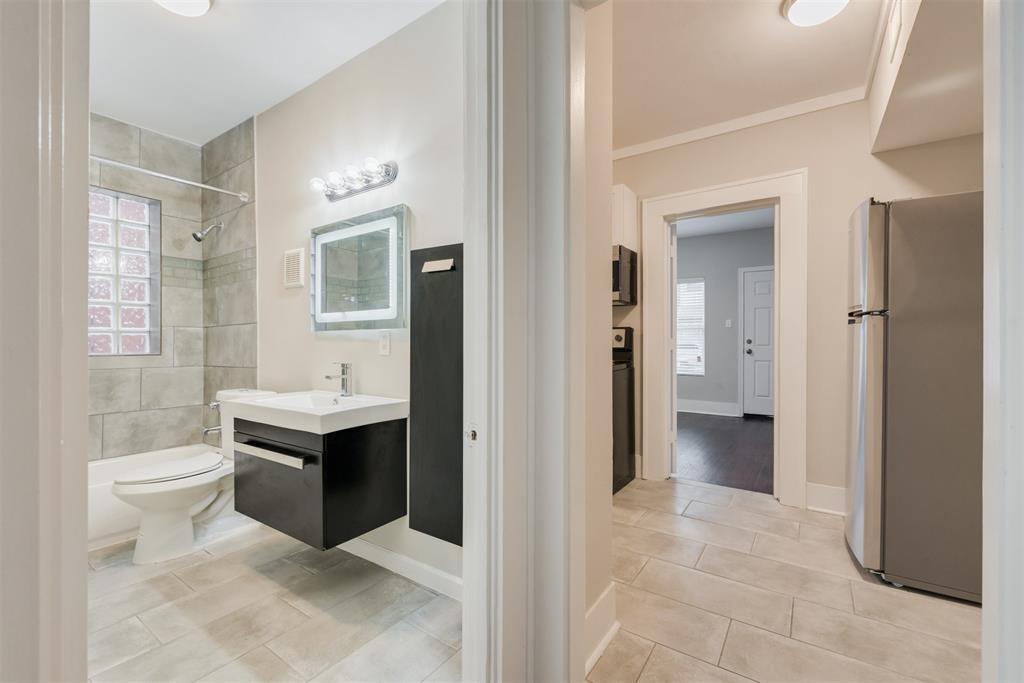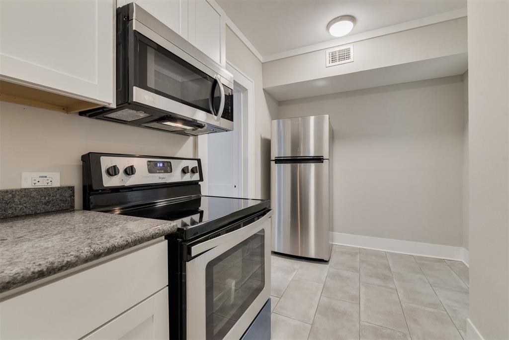 This 1930s Montrose 4-plex was gutted & remodeled to modern perfection. Lots of the original charm has been retained including the original WOOD FLOORS. NEW CENTRAL AC & HEAT, all electric & plumbing replaced, new double pane low E windows, NEW KITCHEN cabinets, new appliances, new faucet, sink and TILE floors. Bathroom with new cabinets and floating back-lit mirror. Large BACK DECK & reserved parking. Lots of interior storage space. Exterior lighting added. The 4-plex shares a washer & dryer in a 1st floor central locked utility room. LED lights, energy efficient AC and appliances should make for low electric bills. One reserved parking spot in back. One upstairs unit available. Available now!