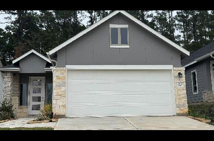 This beautifully designed 1,400 sq ft single-story home features 3 spacious bedrooms, 2 full baths, and a 2-car garage—all with modern style and smart functionality. Enjoy luxury vinyl plank flooring in Bell Canyon Simply Ecru, Agreeable Gray walls, and Extra White trim. The kitchen shines with Omegastone countertops, a handmade stainless sink, upgraded Madison Marvel cabinets, pendant lighting, and a mosaic backsplash. The primary suite offers a double-sink vanity and sleek tile finishes. Curb appeal comes with an 8-ft Craftsman front door, brick siding, and Elevation B package. Located near Lake Conroe and top Conroe ISD schools. Don’t miss your chance—schedule a tour today!