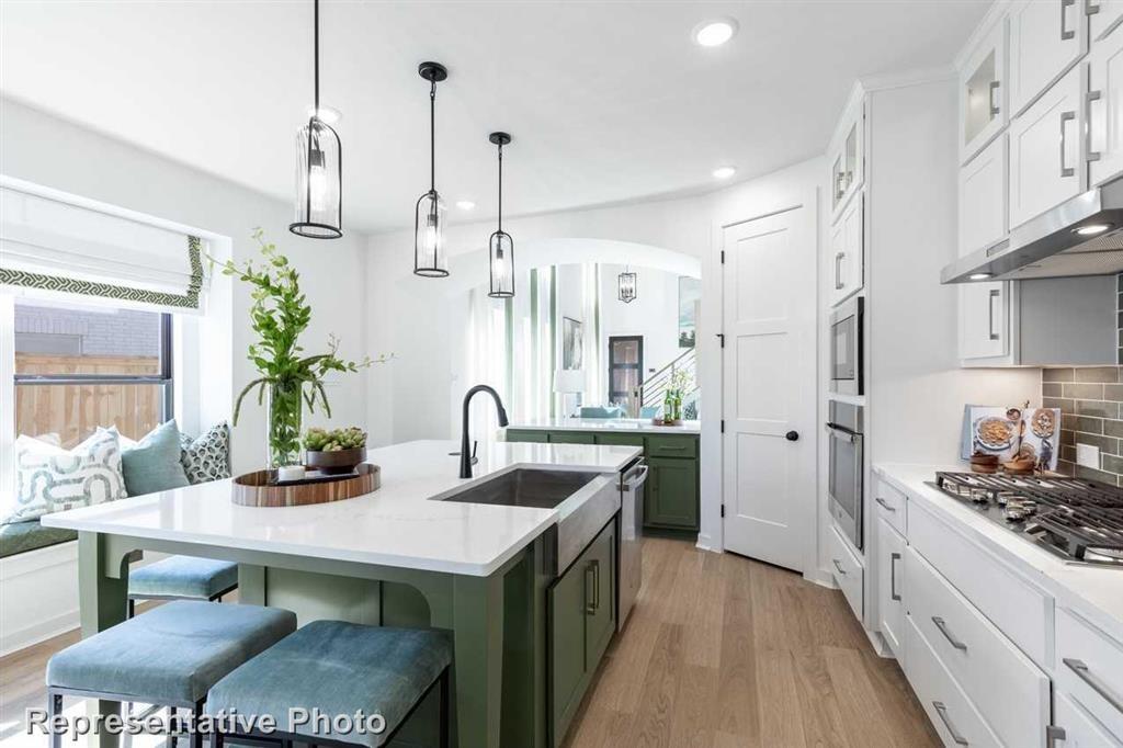 MLS# 63327063 - Built by Highland Homes - Ready Now! ~ Welcome home to this beautiful Highland Home, nestled in the award winning Woodforest community. This home features a lovely front porch facing a wooded reserve, two-story entry, plus two bedrooms downstairs! Downstairs is an open family room with double-stacked windows climbing the tall ceilings, large kitchen island with additional peninsula, a fourth bedroom and bathroom, powder bath, and the primary suite. This kitchen is a show stopper featuring a 5 piece GE stainless appliance package, endless cabinets, window seat, and quartz countertops! Primary suite includes a window seat, large walk in closet and separate tub and shower. Upstairs are two spacious bedrooms, a full bath, walk-in linen closet, and game room open to below. Full sprinkler system, tankless water heater, and SMARTHOME PACKAGE included!!!