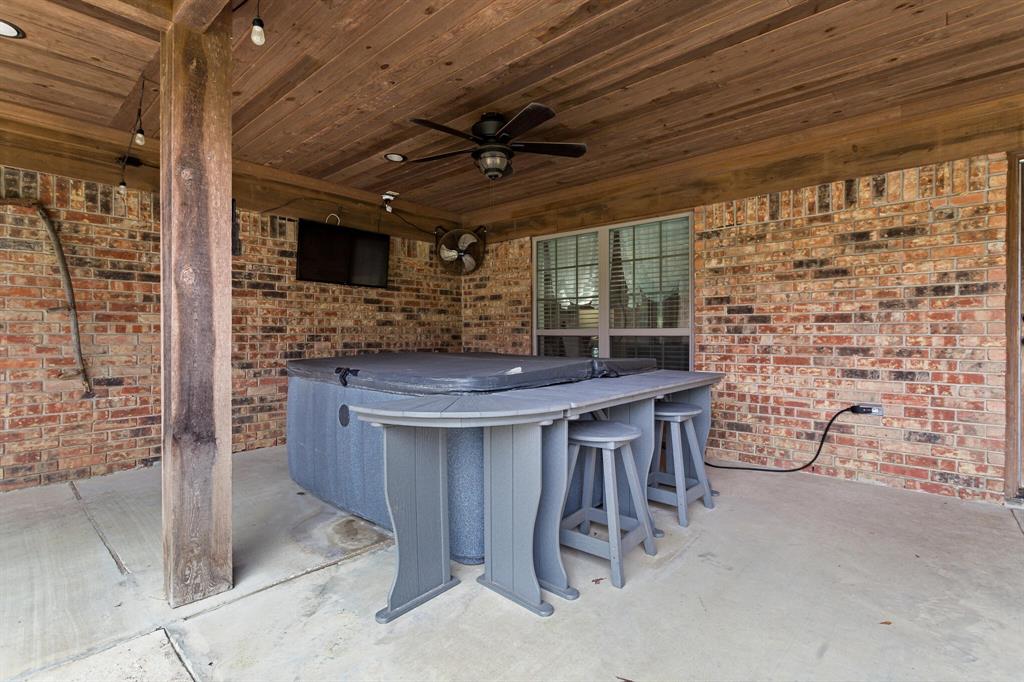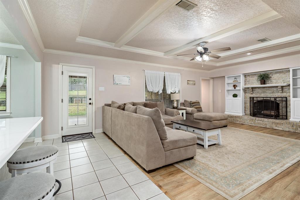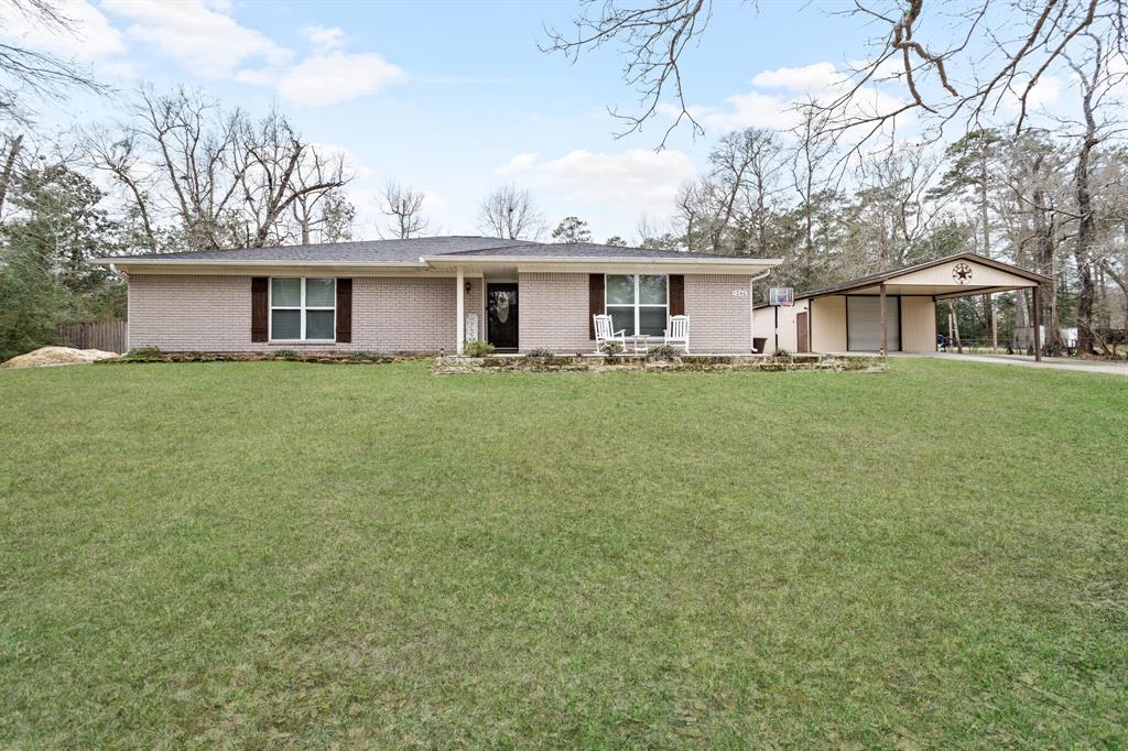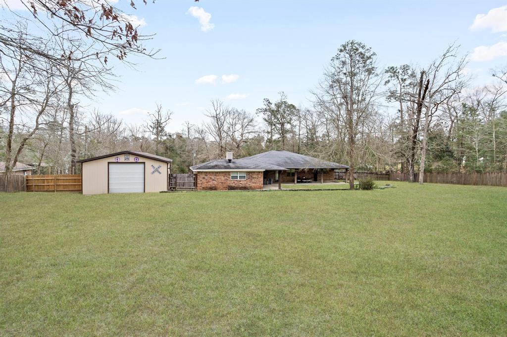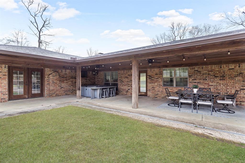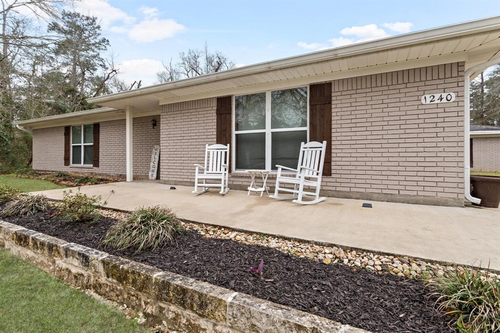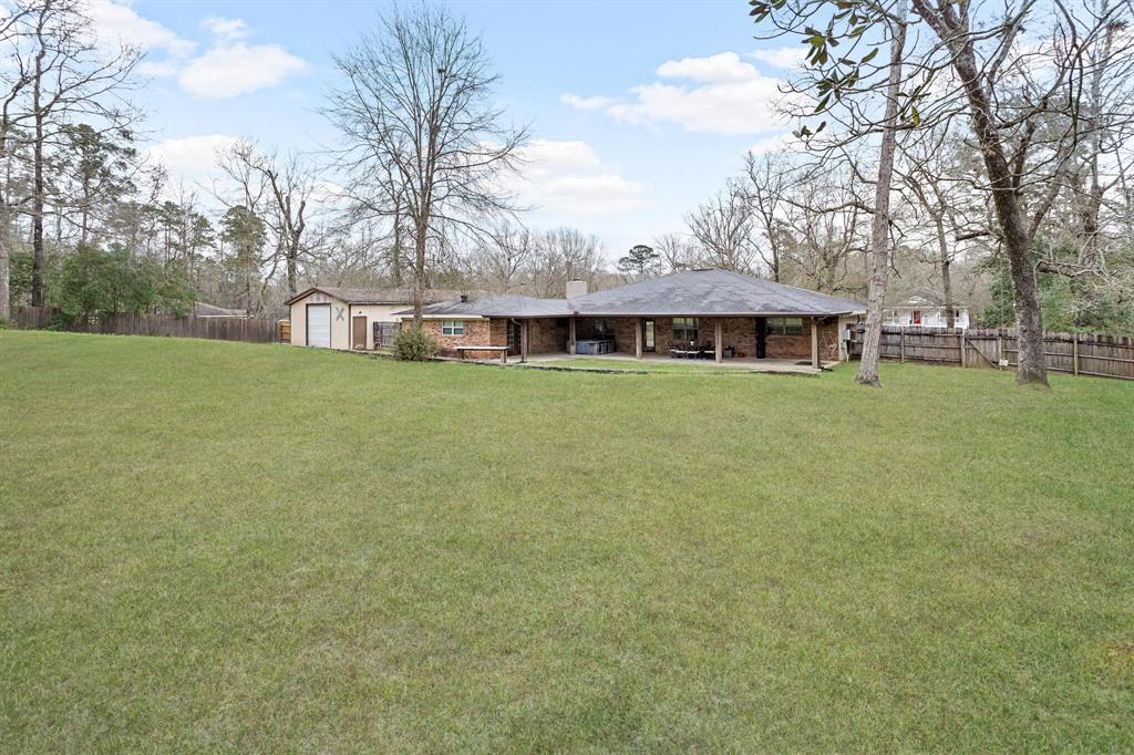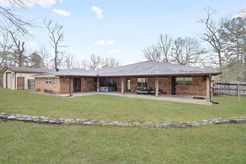 RARE FIND! Beautifully updated 4 bedroom 3 full bath home on an acre in the city of Lumberton that's never flooded per seller. This gorgeous house has great curb appeal w/ charming accent wood railing, front patio, lots of concrete driveway & parking area. The 25x30shop w/ attached 20x25 carport & 30 amp RV hookup on the side of the shop is ideal for storing a boat, RV & extras. Plenty of room outback in the wood privacy fenced yard. Relax in the hot tub under the extended covered back patio, great for chilling & grilling, too. Nice entryway to greet your guests that leads to the open concept den & kitchen area. Kitchen has been updated w/ beautiful quartz countertops, neutral paint, glass top range, breakfast bar & new lighting. Back door off kitchen is convenient to access the back yard & covered patio. Perfect size den w/ brick fireplace w/ built-ins & vinyl wood plank floors. Spacious primary bedroom ensuite has its own private wing w/tile & glass shower and furniture style vanity.