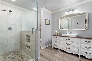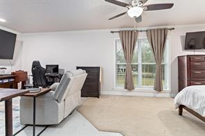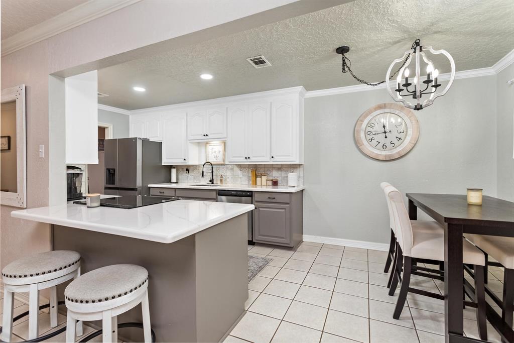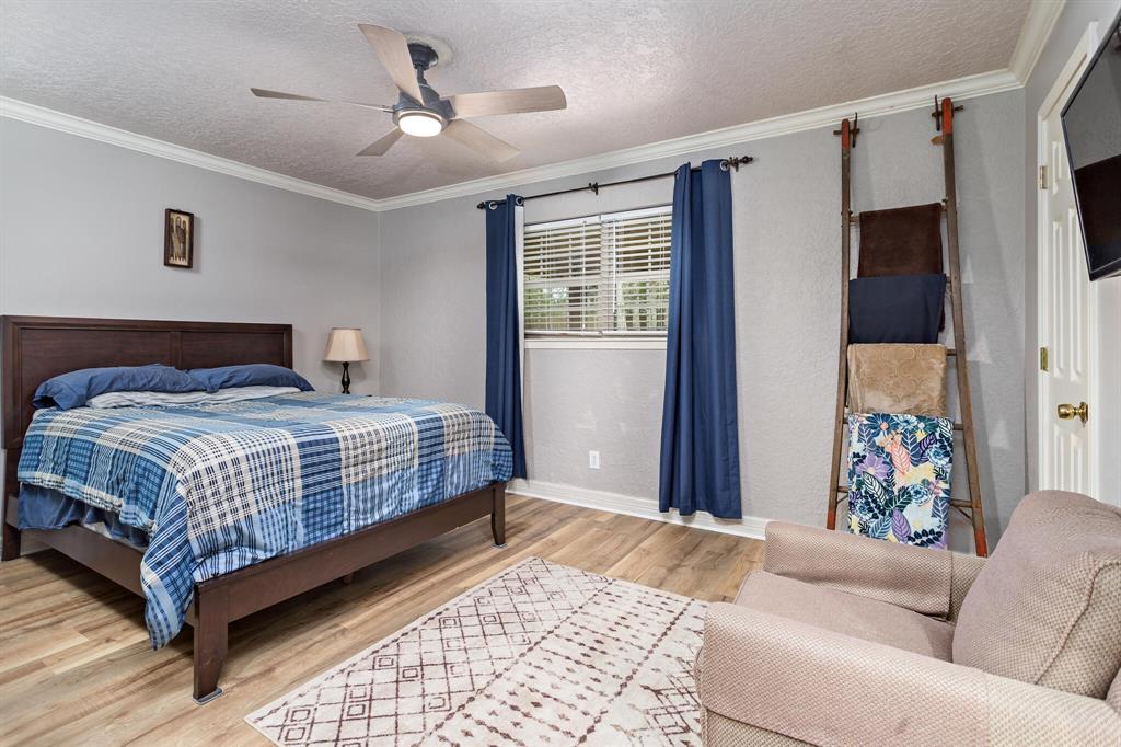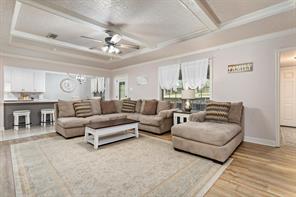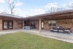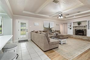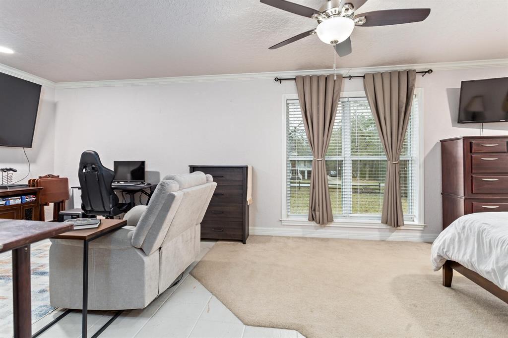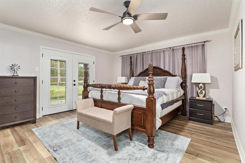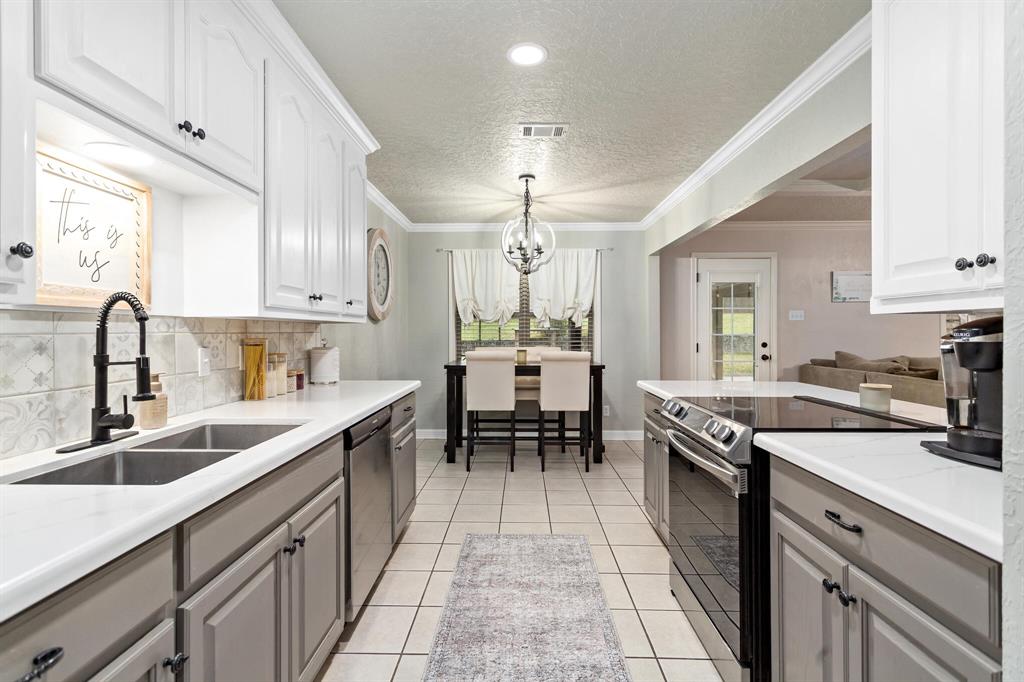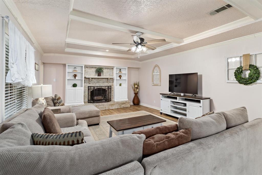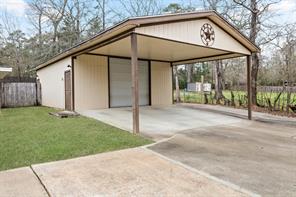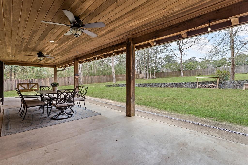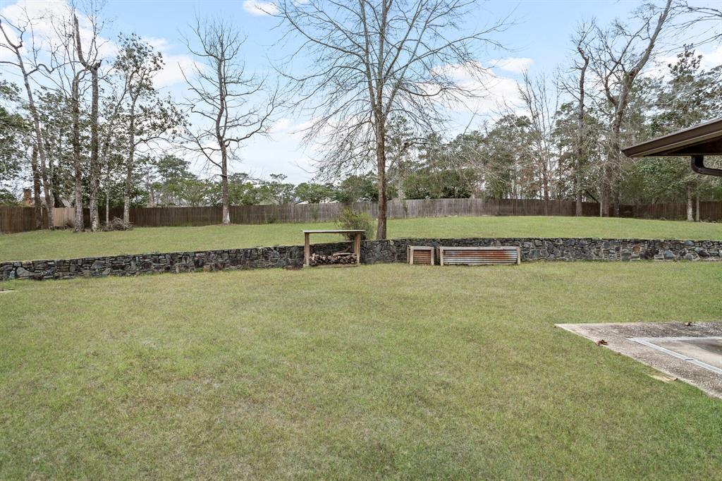 RARE FIND! Beautifully updated 4 bedroom 3 full bath home on an acre in the city of Lumberton that's never flooded per seller. This gorgeous house has great curb appeal w/ charming accent wood railing, front patio, lots of concrete driveway & parking area. The 25x30shop w/ attached 20x25 carport & 30 amp RV hookup on the side of the shop is ideal for storing a boat, RV & extras. Plenty of room outback in the wood privacy fenced yard. Relax in the hot tub under the extended covered back patio, great for chilling & grilling, too. Nice entryway to greet your guests that leads to the open concept den & kitchen area. Kitchen has been updated w/ beautiful quartz countertops, neutral paint, glass top range, breakfast bar & new lighting. Back door off kitchen is convenient to access the back yard & covered patio. Perfect size den w/ brick fireplace w/ built-ins & vinyl wood plank floors. Spacious primary bedroom ensuite has its own private wing w/tile & glass shower and furniture style vanity.