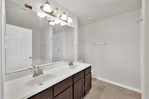 Welcome to your dream home in a prime location! This beautiful two-story single-family residence is nestled within a peaceful community, offering both privacy and convenience. The open floor plan creates a seamless flow throughout the main living areas, highlighted by a spacious family room perfect for gatherings. The well-appointed kitchen boasts ample storage and a charming breakfast nook overlooking the private, fenced yard with a small patio, ideal for relaxing or entertaining. Retreat to the luxurious primary suite featuring double sinks, a separate garden tub, and a shower for your comfort. With one bedroom and a full bath located downstairs, this home is designed for easy living. Fresh, neutral paint throughout ensures a light and bright ambiance. This stunning property is move-in ready and won’t last long—schedule your showing today!