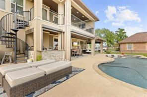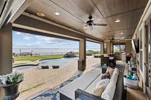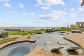 Enjoy amazing lake views, exquisite design, and seamless indoor-outdoor living in this stunning lakeside estate! The open-concept layout boasts soaring ceilings, expansive windows, and a gourmet kitchen equipped with top-tier appliances, custom cabinetry, and generous counter space. The first floor features a luxurious primary suite with a spa-like bath, walk-in shower, and spacious closet. A private office, guest suite, and a conveniently located laundry room enhance everyday living. Upstairs, enjoy a media room, game room, two additional bedrooms, and access to the covered balcony. The backyard retreat includes a heated pool, hot tub, outdoor kitchen, a dedicated bathroom, and a private pier with lifts. A motorized shade system fully encloses the lower-level patio for year-round comfort. Designed for convenience, comfort & peace of mind, this home also includes an elevator and a Generac full home generator. Experience the best of luxury lakeside living—schedule your tour today!