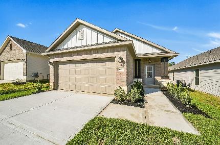 Enjoy relaxed living at Mostyn Springs — a charming community nestled in the peaceful countryside of Magnolia, TX. With close proximity to top-rated schools, shopping, and dining, this neighborhood offers the perfect blend of comfort and convenience. Step into this stunning Driskill plan featuring 3 bedrooms, 2 baths & a versatile flex space. The open-concept design is ideal for entertaining, with the kitchen flowing into the dining area and family room. The kitchen includes stainless steel appliances, including a double-door refrigerator, 42" custom cabinets, and sleek Omega Stone countertops. Enjoy laminate flooring throughout the main areas, with tile in the wet spaces. The primary suite is a relaxing retreat with a walk-in shower, dual sinks, and a spacious walk-in closet. For added convenience, this home also comes equipped with a front-load washer and dryer. Outside, unwind under the covered patio with full sod and a sprinkler system. Don’t miss your chance to make it yours!