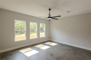 Newly completed, never lived in and move-in ready Modern Farmhouse situated on a private 1.65 wooded acre lot in Republic Grand Ranch. It features a large kitchen with granite countertops and built-ins throughout. The open concept design is perfect for entertaining and features natural sealed concrete floors. Home has Forno kitchen appliances, a 1000 Gallon Propane Tank (80% full), whole house surge protector, Reolink, Home Exterior Surveillance System, Cat6 wiring, Gutters and a Sprinkler System. Other additions are High Speed Fiber Optic already at property, rough-in for future water softener, (3) prewired 30 amp connections for future Generator, Front Gate or Shop Barn. Property includes underground utilities with no MUD tax. It is minutes from shopping, dining, schools, hospitals and entertainment. Ideal for those seeking a serene lifestyle with nearby access to modern conveniences.