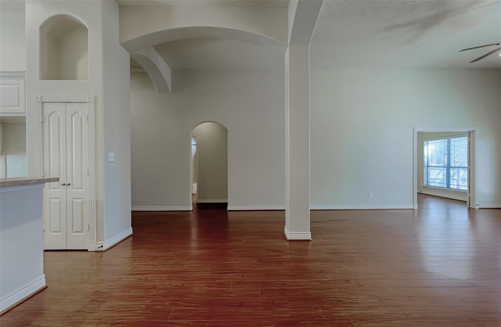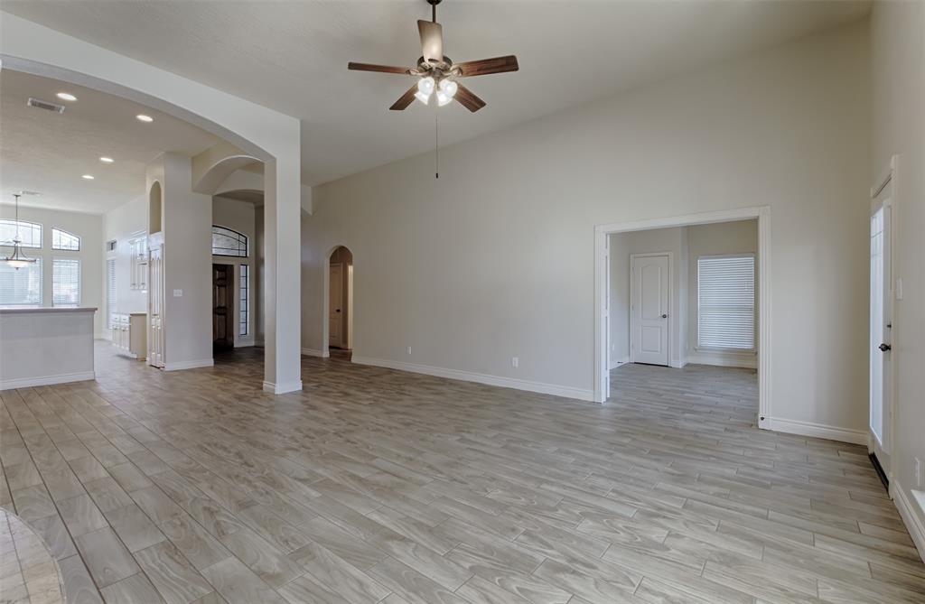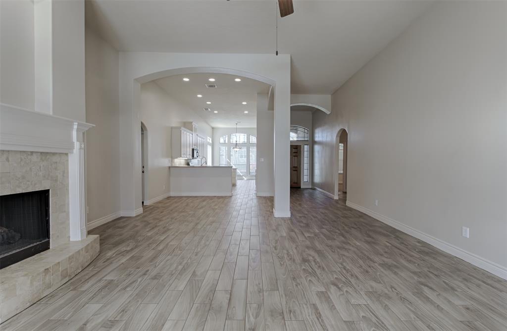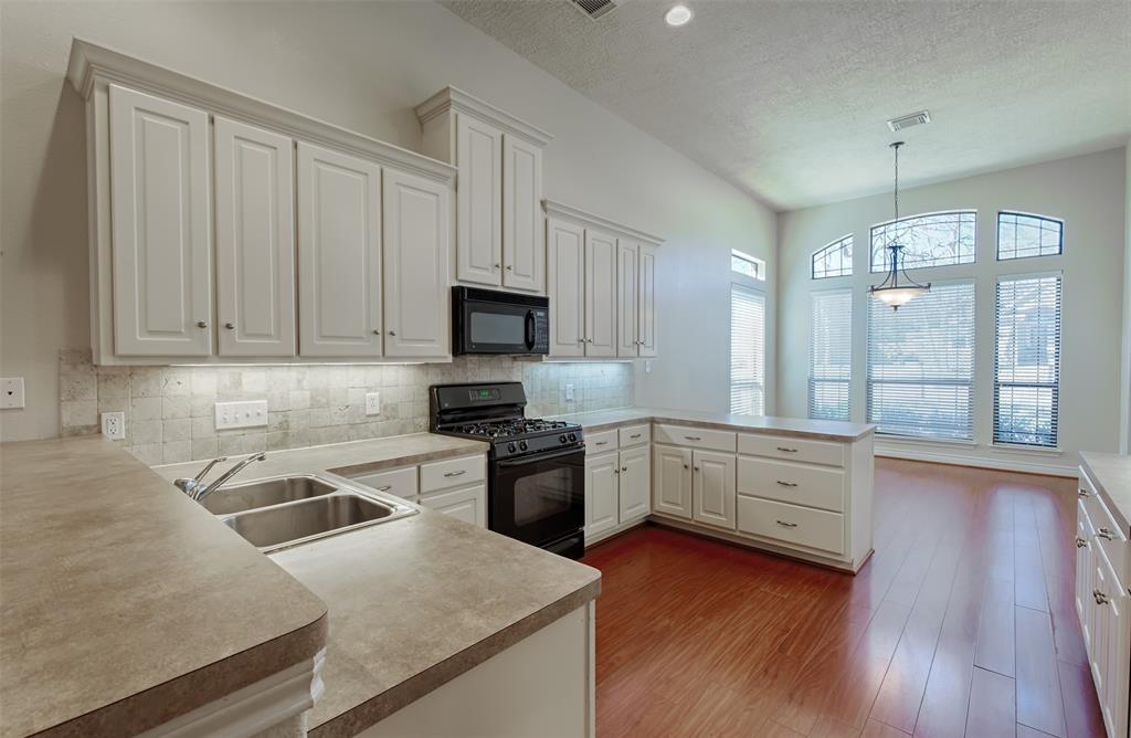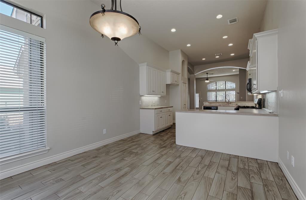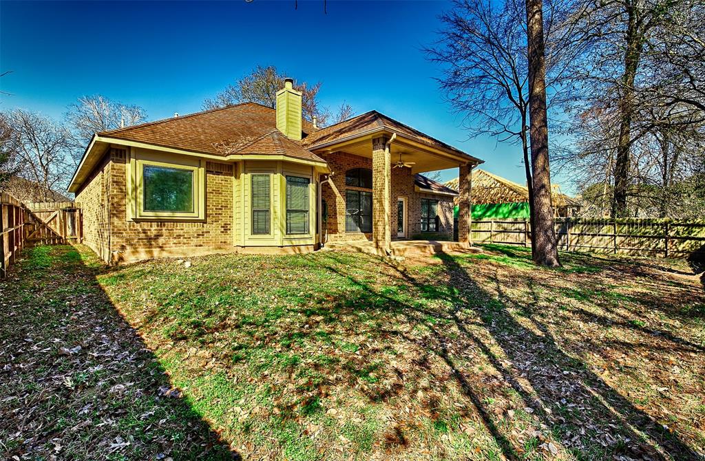Traditional 1-story home with 3 bedrooms and a home office/ fully fenced back yard/ tennis/ pickleball courts and 2 pools in neigborhood/ Gas range/ gas fireplace/ large walk in closet in maser/ double sinks, bath and shower in master bath/