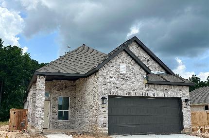 The Berkeley Floorplan - The Berkeley is a stunning single-story, 3-bed, 2-bath home with a 2-car garage that captures modern living at its best. With soaring high ceilings and an open-concept layout, the kitchen dazzles with stainless-steel appliances, granite countertops, and elegant wood-look tile that flows throughout. Located in Evergreen, the community is all about lifestyle: enjoy pickleball and tennis courts, swim or hang out at the neighborhood pool & amenity center, and know your kids are in top shape with the brand-new elementary school right in the neighborhood. Plus, commuting is a breeze—just 10 minutes from The Woodlands!