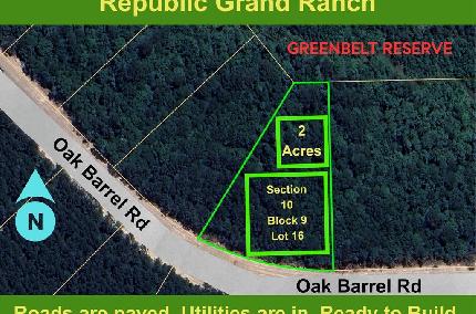 LARGE 2.04 ACRES > HEAVILY WOODED WITH MATURE TREES > QUIET PARCEL > BACKS TO PEACH CREEK > NO PIPELINES > Located on the outskirts of Willis with great schools and nearby shopping. Large lot wooded community with gentle rolling hills. Peaceful privacy. You will never be crowded by neighbors. Republic Grand Ranch is a large lot, wooded community in the rolling hills. Country lifestyle for your custom forever home. Trees, paved roads, water, HIGH SPEED fiber optic internet & underground power through out. Covered pavilions, parks, ponds, playgrounds, BBQ areas. Minutes from shopping, dining, schools, hospitals, and entertainment. Low taxes - No MUD tax. Average elevation is 400’ ASL. Plenty of greenspace and trails for hiking, biking and horseback riding.