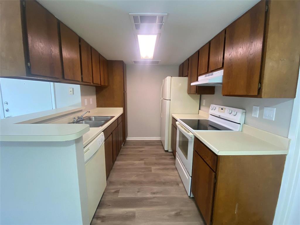 Much sought after DOWNSTAIRS unit! All appliances including a refrigerator and stackable washer and dryer. Fresh neutral paint. Gated complex with access to the pool and 1 covered parking space included. Water and garbage also included. Ready for a quick Move in!