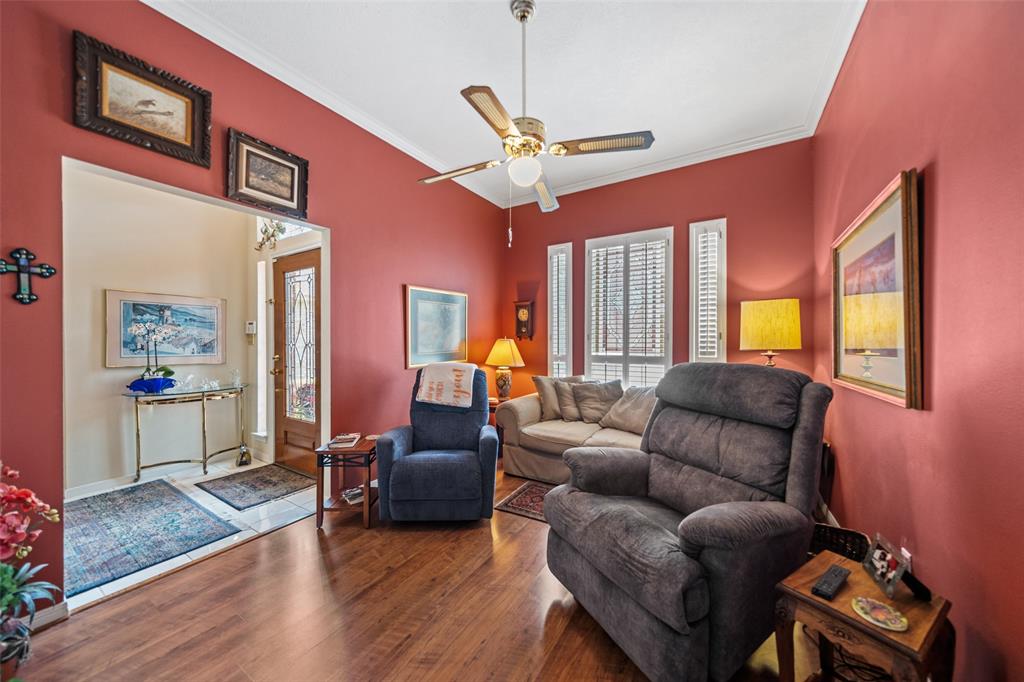 Gorgeous curb appeal w/lush landscaping in the highly desired private gated patio home community of Quail Park. Meticulously maintained open design, mahogany and leaded glass front door, hard wood flooring, designer paint, recessed can lighting, walls of windows, plantation shutters, tiled entry, study (could be 4th bedroom) formal dining room, upgraded fixtures, etched glass chandelier ,large family room w/corner gas fireplace, light &bright breakfast and kitchen with granite countertops, tumbled marble back splash, wrap around breakfast bar & an abundance of counter and cabinet space, Primary suite is grand with coffered ceilings, primary bath with corner tub, custom over sized showers, his and her vanities, walk in closets and two sky lights. All guest rooms are nice size w/large closets and a full guest bath. Serene atrium, sprinkler system, private back yard (no backyard neighbors) Trash & lawn service included in HOA. LOW TAX RATE HVAC & water heater 2024