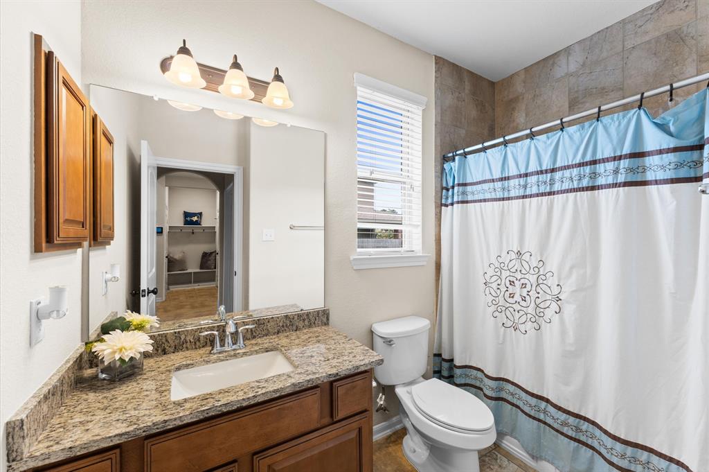 Welcome to your dream home in the heart of Creekside one of the Woodlands' most desirable communities! This spacious move in ready home features 4 bedroom and 3 bathrooms, home offers a comfortable living space, perfect for families and entertaining. Step inside to find an open-concept layout with high ceilings and abundant natural light. The gourmet kitchen features granite countertops, stainless steel appliances, a gas cooktop and a large island that flows into the cozy family room with a stone fireplace. The primary suite is located on the first floor, complete with a spa-like bathroom dual vanities, soaking tub and walk-in-closet, a second bedroom is located on the first floor with a bathroom. Upstairs, you'll find a large game room, and 2 additional bedrooms and one full bath. Enjoy the Texas evening in your private backyard with a cover patio. The home its just minutes from top-rated schools, parks, walking trails and restaurants. This home combines comfort and convenience.
