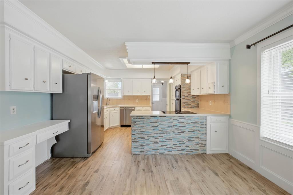 CHARMING 1-story in Nottingham Country!!! Loads of updates and lots of care have been put into this 4-bedroom, 2.5 bath home. Boasting a unique layout, no carpeting, a calm and neutral color palette, recessed lighting, wood beams, updated lighting fixtures, this home does not disappoint! As you enter, you're greeted by an inviting Entry, Living Room directly ahead w/built ins and a cozy gas/log fireplace, Dining Room to the right with unique shiplap accent walls. Kitchen & Breakfast area flow easily from Dining Room. Laundry Room & Half Bath off the Kitchen. Kitchen includes Refrigerator and Microwave/Oven built in, electric cooktop, and planning desk. Primary Bedroom features double vanities, a soaking tub/shower combo, and spacious walk-in closet. Three Secondary Bedrooms and a Secondary Bath complete this home. Backyard perfect for relaxing and you'll enjoy the extra-long driveway with a detached garage! Zoned to top-rated schools and close to so much – come see today!!!