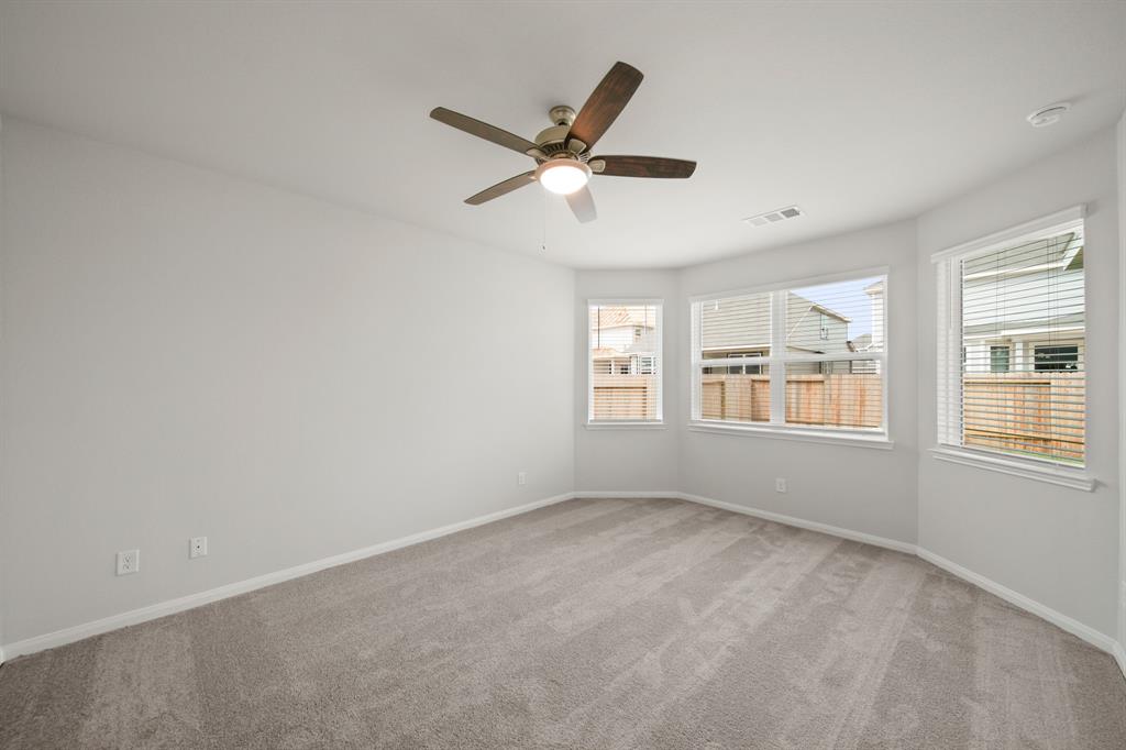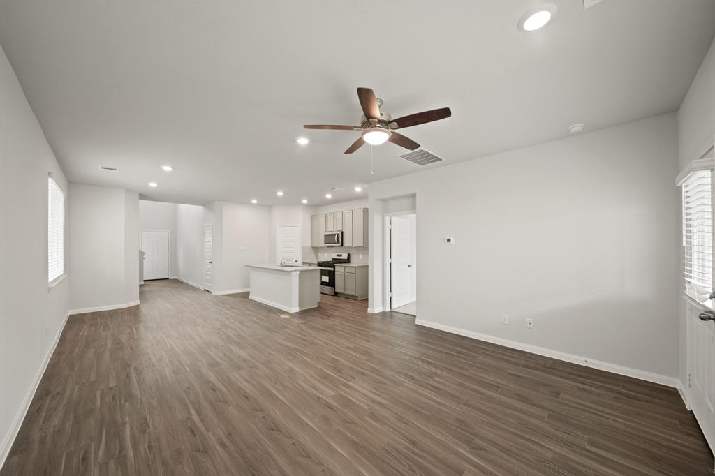 Love where you live in River's Edge in Conroe, TX! Home is zoned to the excellent Woodlands schools - Buckalew Elementary School, Mitchell Intermediate School, McCullough Junior High School, and Woodlands High School. The Lakeland floor plan is an open concept 2-story home, with soaring ceilings in the entry, and features 3 bedrooms, 2.5 bathrooms, and a 2-car garage. This home has it all, including privacy blinds and vinyl plank flooring throughout the common areas! The gourmet kitchen is sure to please with 42” cabinets, granite countertops, and stainless-steel appliances! Retreat to the first-floor Owner's Suite featuring a beautiful bay window, double sinks with granite countertops, a sizable shower, and a walk-in closet. Secondary bedrooms have walk-in closets, too! Enjoy the great outdoors with full sod, a sprinkler system, and a covered patio! Don't miss your opportunity to call River's Edge home, schedule a visit today!