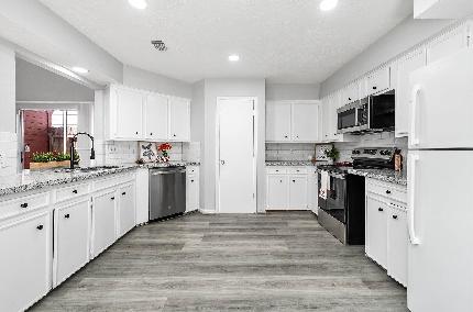 This beautiful home has been thoughtfully upgraded with all-new PVC plumbing, new A/C, new patio, new fencing, new hot water heater, new driveway, fresh interior paint, and stylish new fixtures throughout! Enjoy a private entrance with an expansive yard and no back neighbors for ultimate privacy. Inside, soaring ceilings and a highly functional, open floor plan make everyday living and entertaining a breeze. The kitchen seamlessly flows into the dining and living areas, while the primary bedroom on the first floor offers comfort and convenience. With modern updates, ample outdoor space, and peaceful surroundings, this home is ready to welcome you—and you’ll love the community pools, tennis courts, club house, horse stables AND no back neighbors! Create your home and life here at this great price!