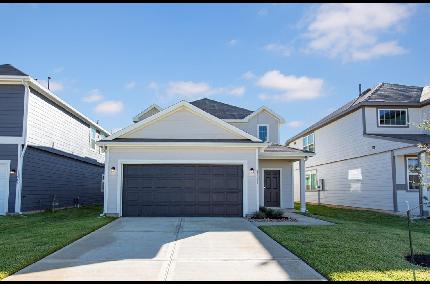 Love where you live in River's Edge in Conroe, TX! Home is zoned to the excellent Woodlands schools - Eissler Elementary School, Mitchell Intermediate School, McCullough Junior High School, and Woodlands High School. The Redbud floor plan is a spacious two-story home with 5 bedrooms, 3.5 baths, game room, and 2-car garage. This home has it all - including vinyl plank flooring throughout the first floor! The gourmet kitchen is sure to please with 42" cabinets, granite countertops, stainless-steel appliances, and a box window at the dining area! Retreat to the first-floor Owner's Suite featuring double sinks with granite countertops, a sizable shower, and spacious walk-in closet. Enjoy the great outdoors with a sprinkler system and a covered patio! Don't miss your opportunity to call River's Edge home, schedule a visit today!