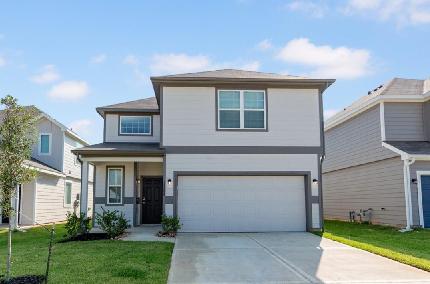 Love where you live in River's Edge in Conroe, TX! Home is zoned to the excellent Woodlands schools Eissler Elementary School, Mitchell Intermediate School, McCullough Junior High School, and Woodlands High School. The Camden floor plan is a charming 2-story home with 3 bedrooms, 2.5 baths, and a 2-car garage. This home has it all, including privacy blinds, wrought iron spindles at the staircase, and vinyl plank flooring throughout the first-floor common areas! The gourmet kitchen is sure to please with 42" cabinets, granite countertops, and stainless-steel appliances. Upstairs offers a split floor plan and a private retreat for all bedrooms! Retreat to the Owner's Suite featuring double sinks with granite countertops, a sizable shower, and a walk-in closet. Secondary bedrooms have walk-in closets too! Enjoy the great outdoors with a sprinkler system, covered patio, and no back neighbors! Don't miss your opportunity to call River's Edge home, schedule a visit today!