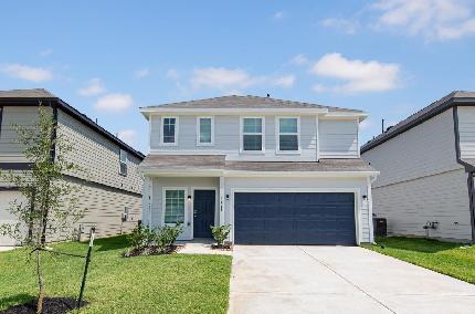 Love where you live in River's Edge in Conroe, TX! Home is zoned to the excellent Woodlands schools Eissler Elementary School, Mitchell Intermediate School, McCullough Junior High School, and Woodlands High School. The Auburn floorplan is a spacious 2-story home with 3 bedrooms, 2.5 baths, flex room, and 2-car garage. This home has it all, including vinyl plank flooring throughout the common areas, upgraded carpeting in the bedrooms, and iron spindles at the staircase! The gourmet kitchen is sure to please with 42" cabinets, granite countertops, and stainless-steel appliances! Upstairs features a private retreat for all the bedrooms! Retreat to the Owner's Suite featuring double sinks with granite countertops, a sizable shower, and a walk-in closet! Enjoy the great outdoors with a sprinkler system, covered patio, and no back neighbors! Don't miss your opportunity to call River's Edge home, schedule a visit today!