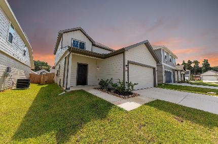 Love where you live in River's Edge in Conroe, TX! Home is zoned to the excellent Woodlands schools Eissler Elementary School, Mitchell Intermediate School, McCullough Junior High School, and Woodlands High School. The Wildflower floor plan is a charming 1-story home with 3 bedrooms, 2 bathrooms, flex space, and a 2-car garage. This home has it all, including privacy blinds and vinyl plank flooring throughout the common areas! The gourmet kitchen is open to both the dining and family rooms and features 42" white cabinetry, granite countertops, stainless-steel appliances, and a box window at the dining area! Retreat to the Owner's Suite featuring double sinks, a sizable shower, and a walk-in closet. Enjoy the great outdoors with a sprinkler system and a covered patio! Don't miss your opportunity to call River's Edge home, schedule a visit today!