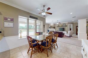 Perfect blend of country serenity with city conveniences in this meticulously maintained home on 3.618 beautifully treed acres in Willow Run. Less than 5 miles from Texas A&M University and Kyle Field, this spacious home offers 3,691 sf of comfortable, well-designed living space. A charming front porch welcomes you and inside split formals featuring crown molding and classic wainscoting in the dining room. The spacious living area boasts built-in cabinetry, a cozy corner fireplace, and a wall of windows. The open-concept kitchen offers an island, ample counter space, and a seamless flow to the living and dining areas. The primary suite is oversized with raised ceilings and dual sinks in the primary bathroom and jacuzzi tub. There is also a flex room/gameroom w/endless options. Step outside to a large back porch spanning the width of the home overlooking the sparkling pool! Ample privacy with mature trees for privacy and unbeatable access to city amenities with NO HOA! NEW roof in 2018!
